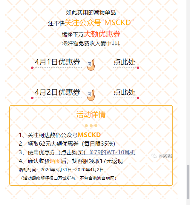 先关注公众号,晚上8点10分左右会发布第二波优惠券