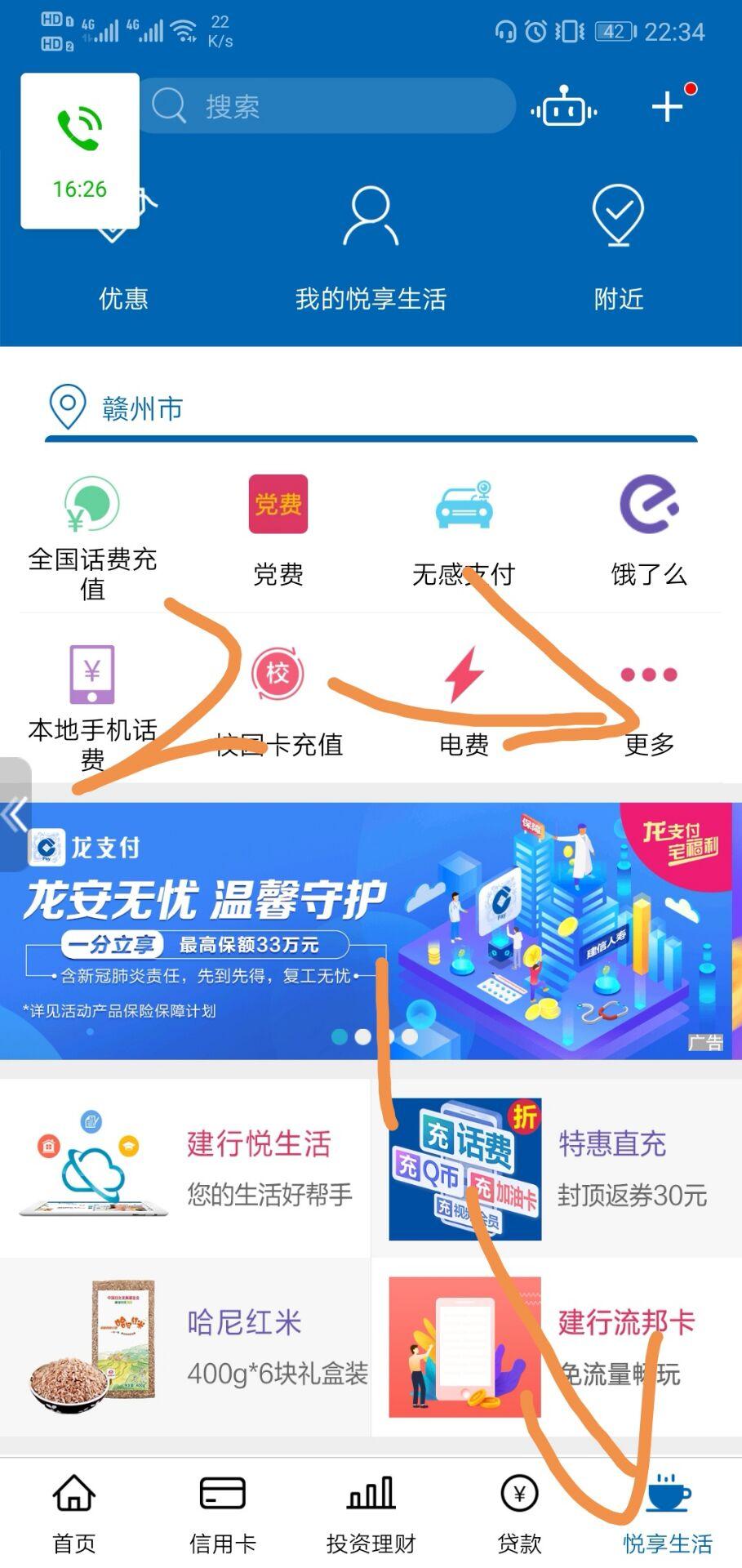 建行APP,悦享生活,更多,本机手机话费,充值一块钱,抽奖至少五块,记得加果