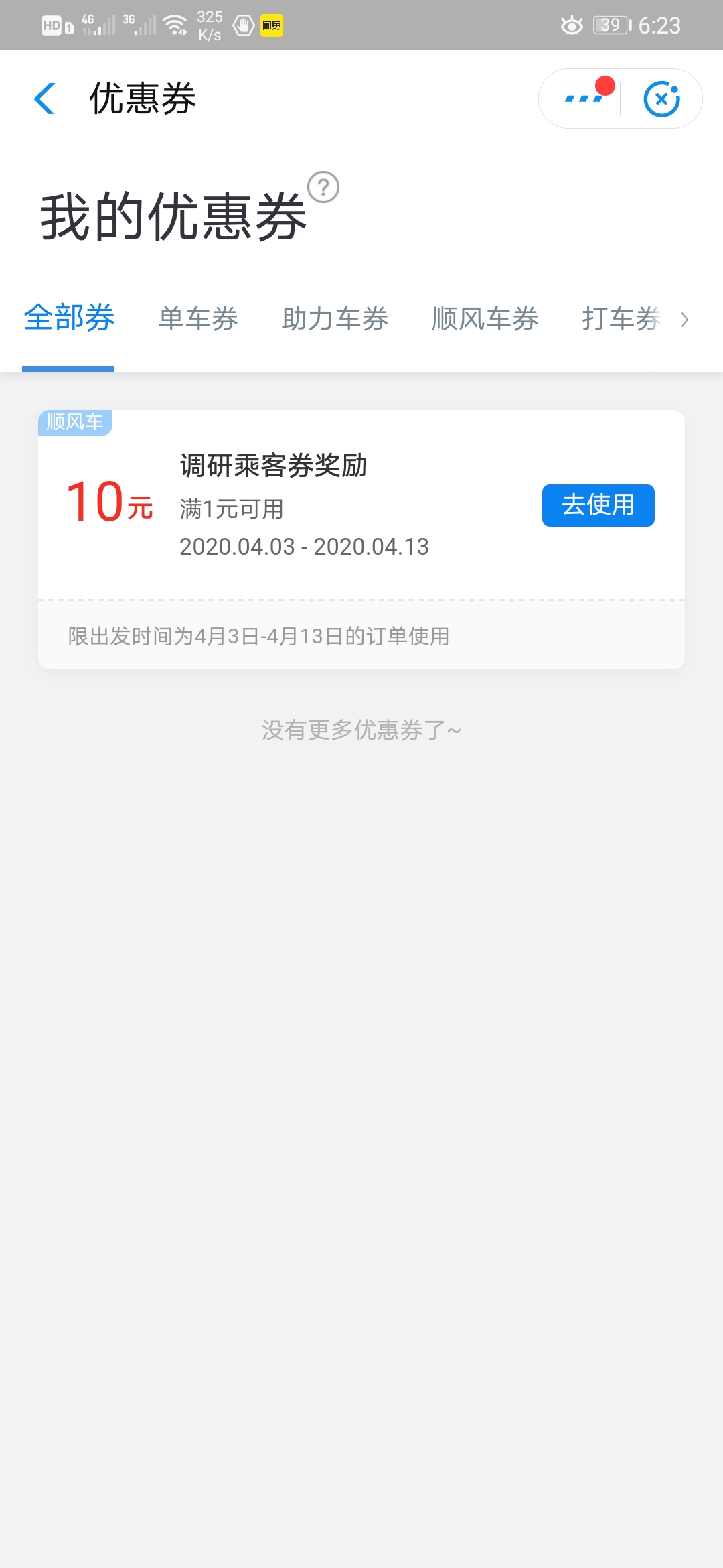 【哈啰顺风车】感谢您填写问卷,10元乘客券已到账,戳