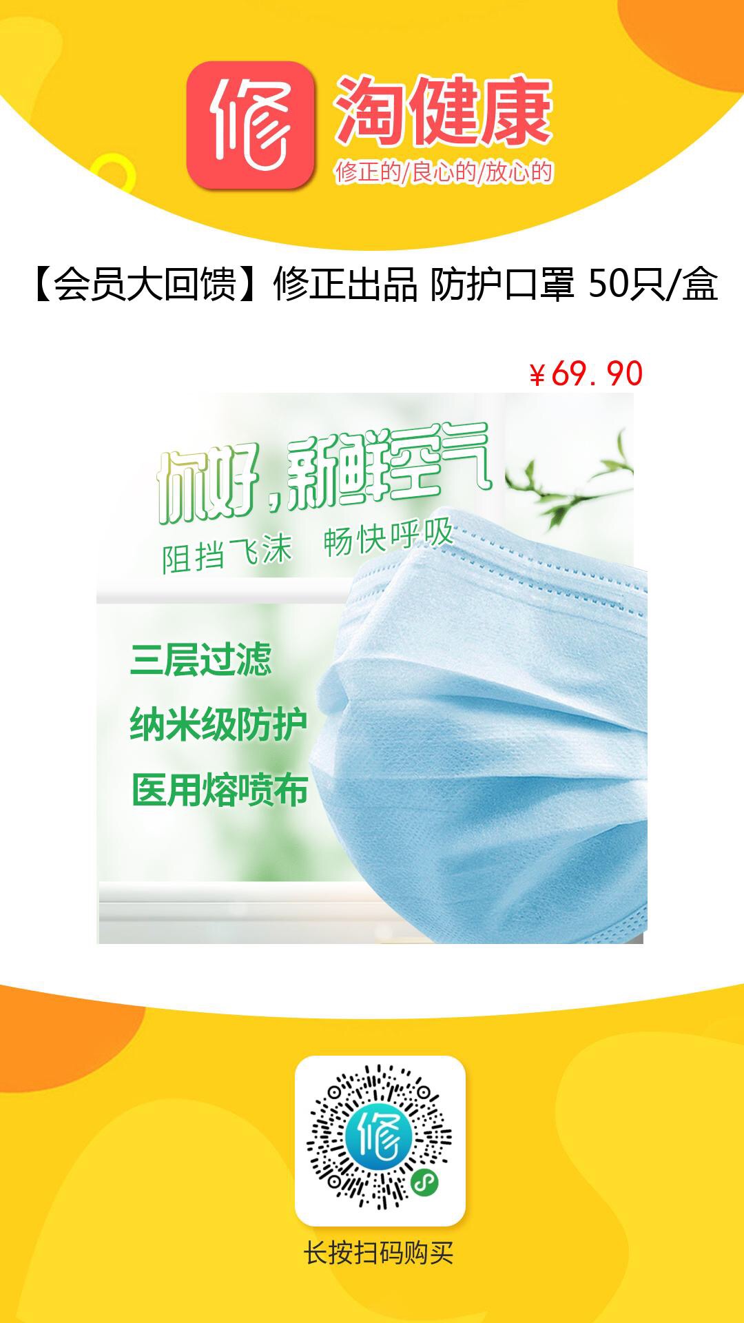 抢口罩啦! 69.9元50只/盒-1.4元/只