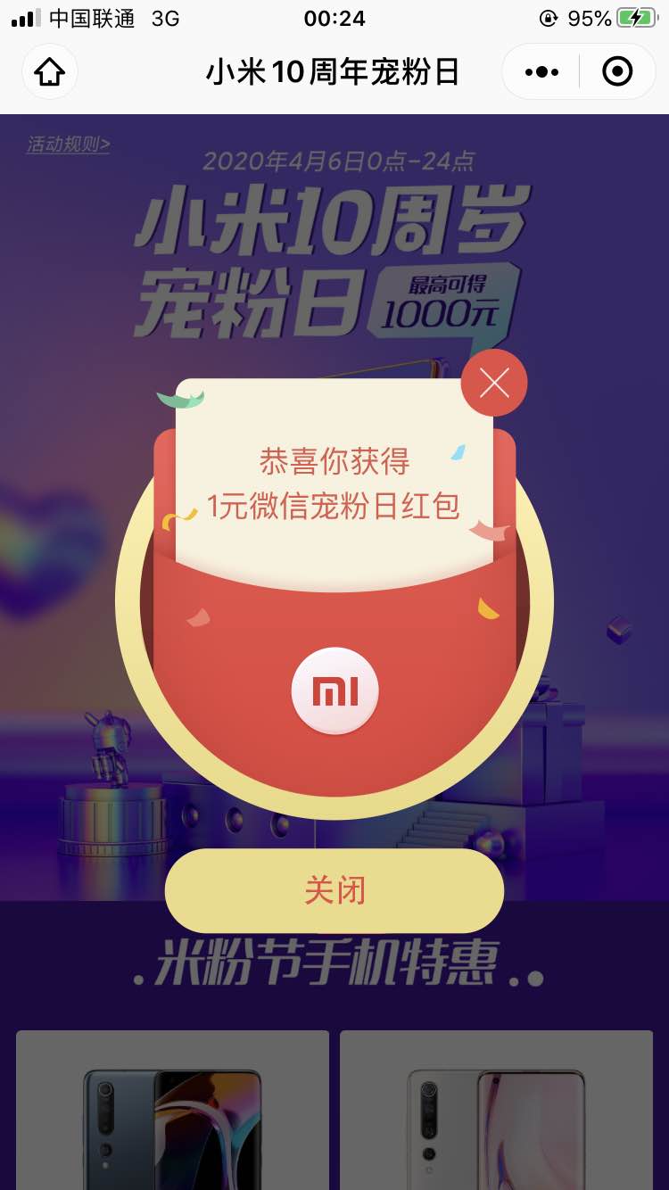 微信关注小米商城公众号,发送生日快乐,有几率得红包