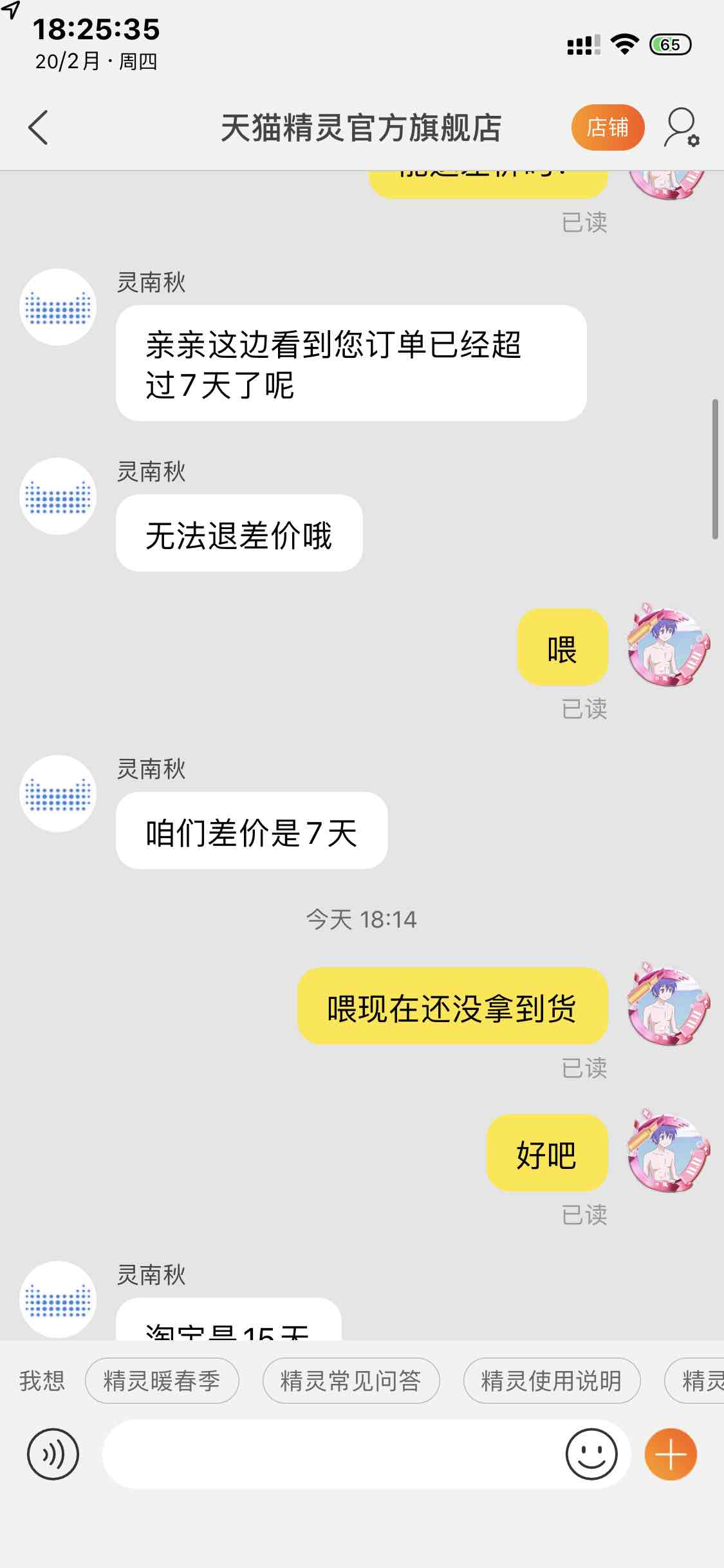 妈的送过来,快递还没到,就结束了,这也算到消费者头上吗,快递送了7天,sb淘宝真垃圾,还不如东哥好,东哥真的是好兄弟,
