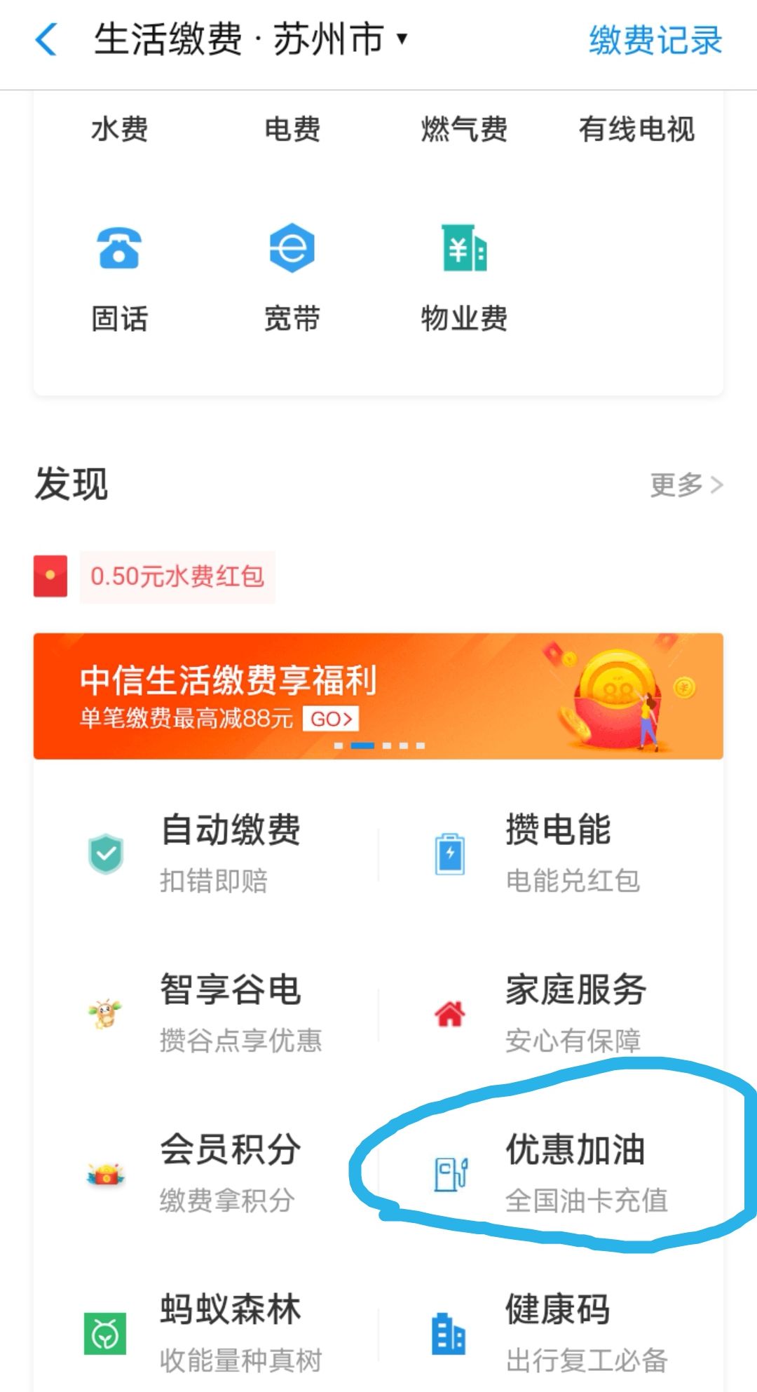 路径:支付宝生活缴费,最底下,优惠加油,点进去,往下翻,没玩过的有红包,还有个加油优惠日,里面可以1分秒杀,不限制shen/份证,还有个易捷便利店抽奖,抽到的8毛也可以充油卡,这些小红包可以叠加,我是苏州,中石化可以1块,2块充,中石油或者其他地区自测,还可以,小毛积少成多,还是不错的