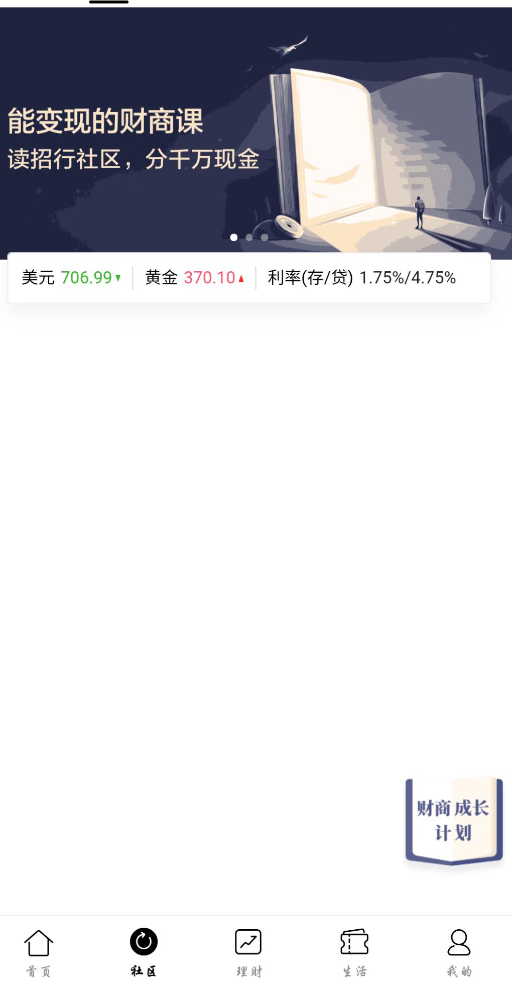 招行app -社区-财商分现金。记得提现。