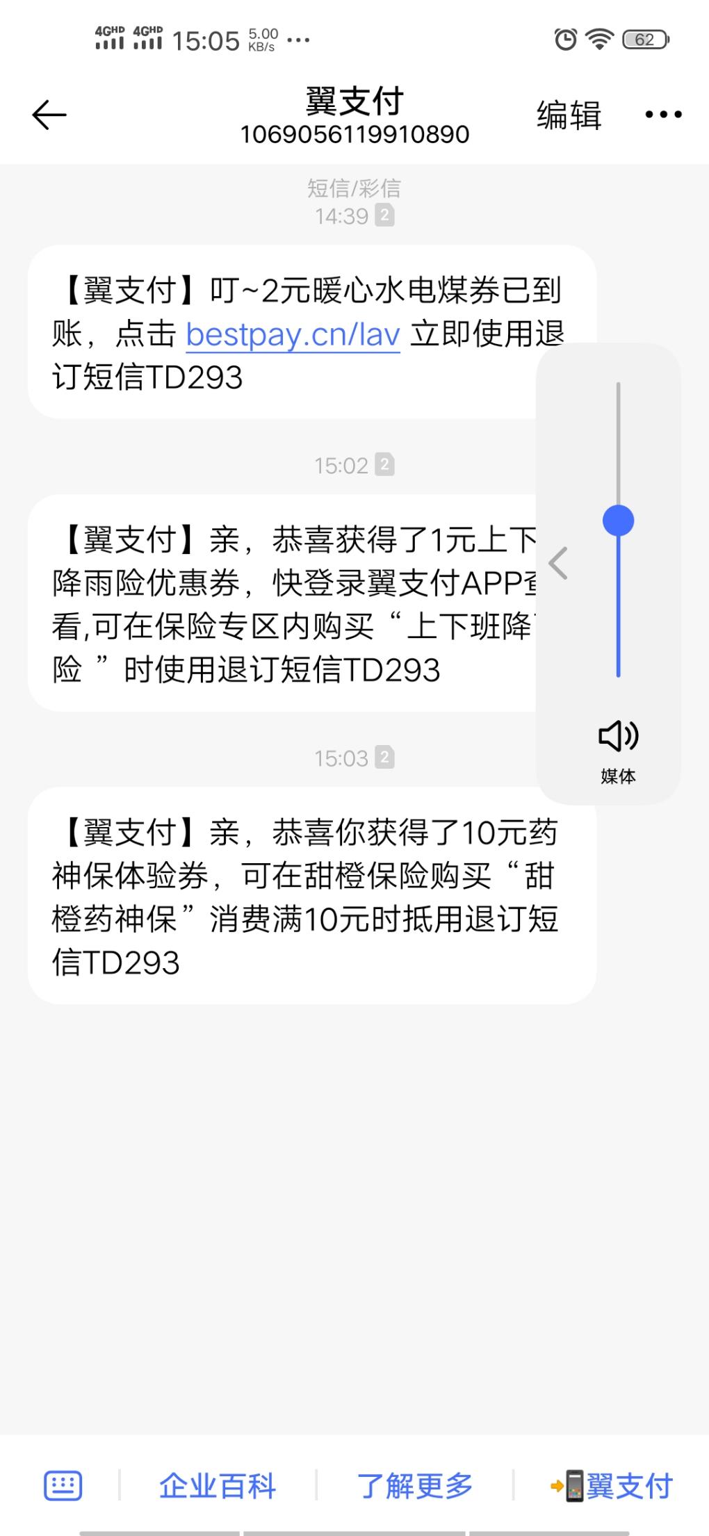 【翼支付】叮~2元暖心水电煤券已到账,点击 bestpay.cn/lav 立即使用退订短信TD293