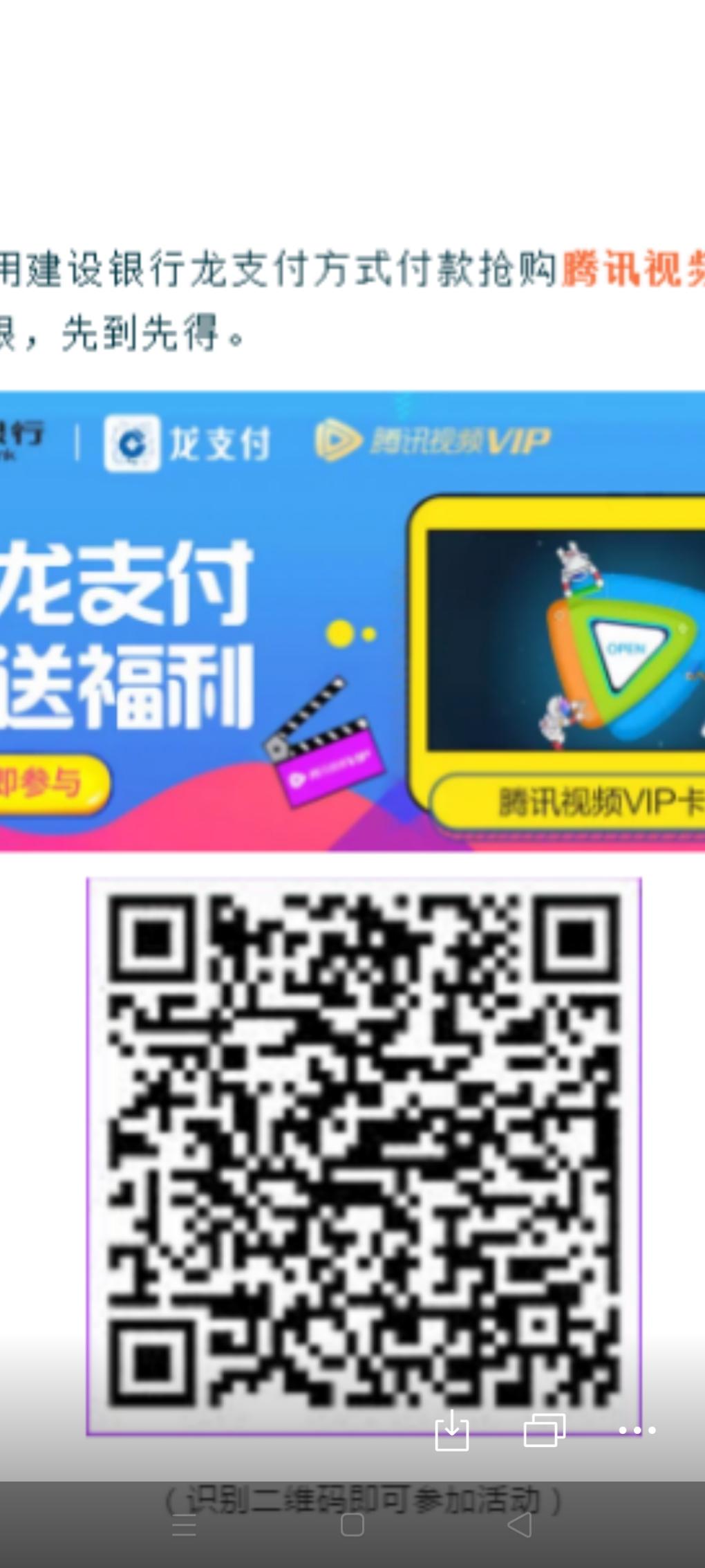 建行扫码,2折腾讯季卡直充,撸了10个了,够看几年了