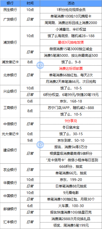每笔消费达100元人民币及以上抽红包,每户每自然月最多30个红包。路径:官微——热卡——拆红包(截止)