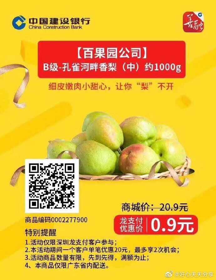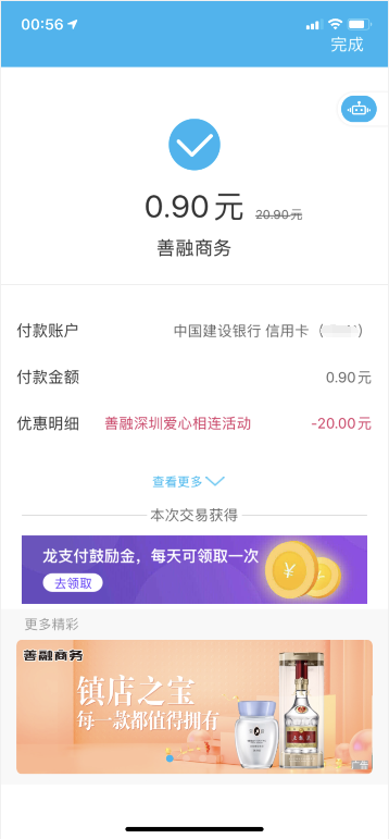 如图。微信或善融APP扫码下单,跳龙支付优惠立减20