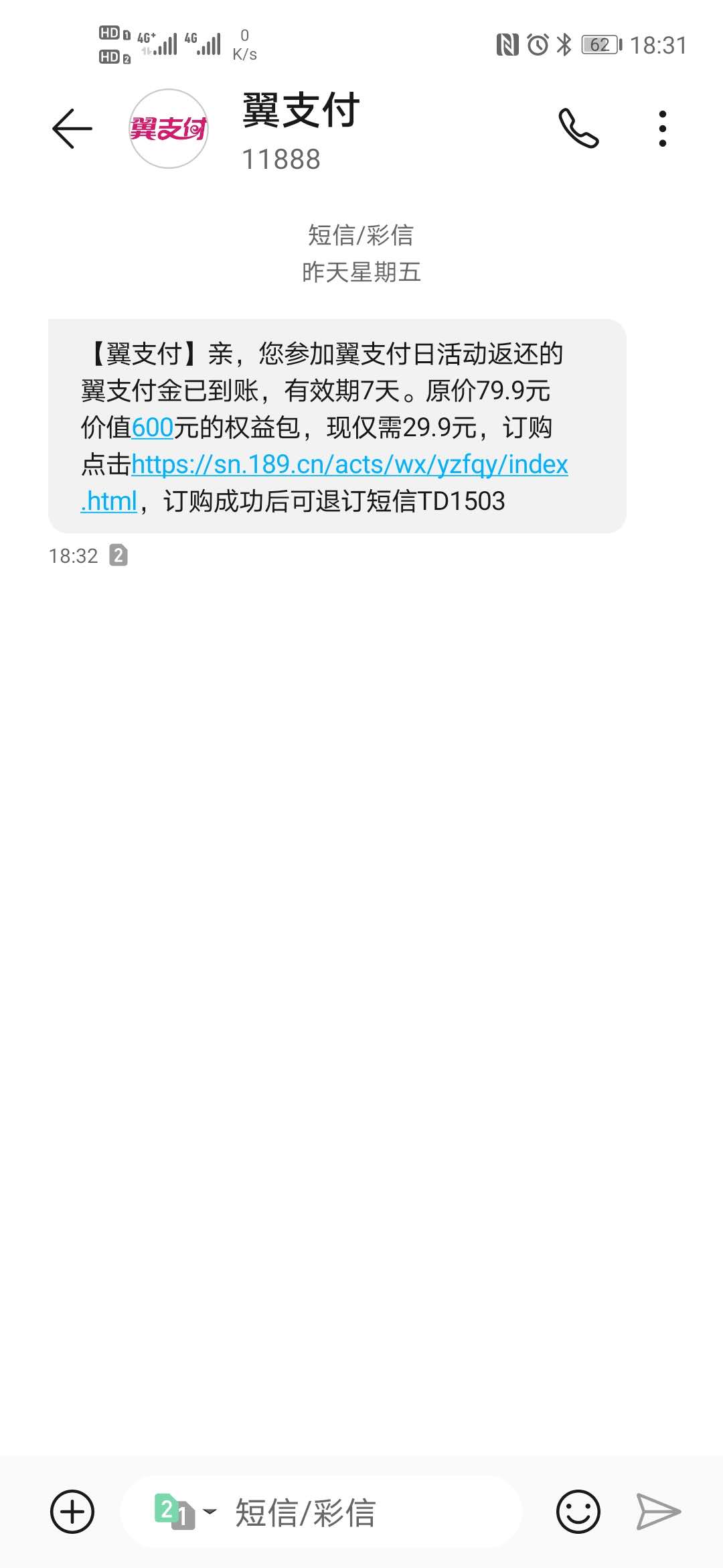 翼支付大毛!!!