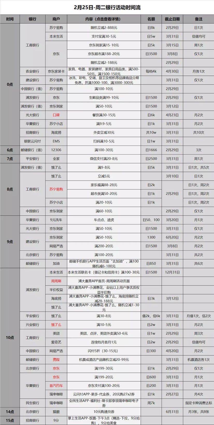 2.25各大银行薅羊毛