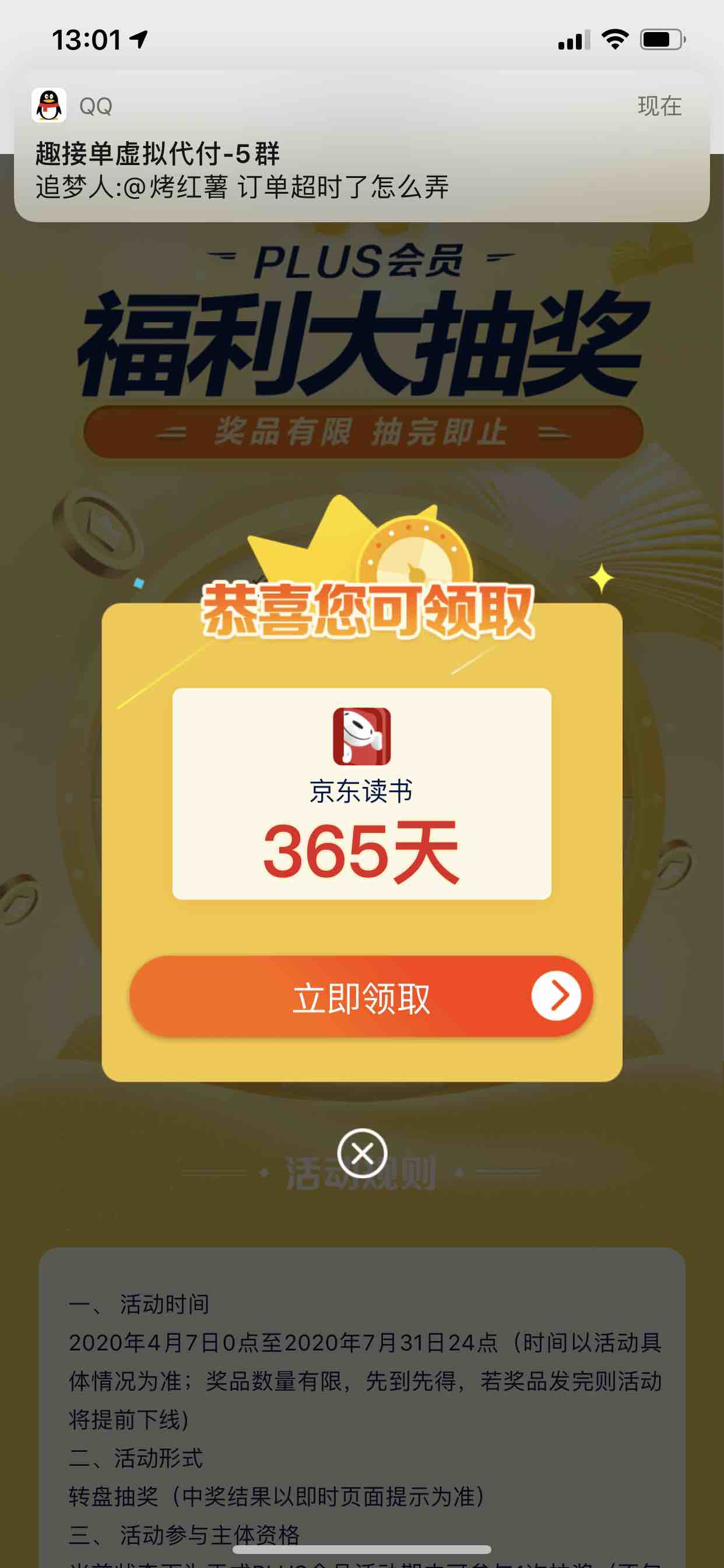 链接https://plus.m.jd.com/rights/drawActivity?activityId=1