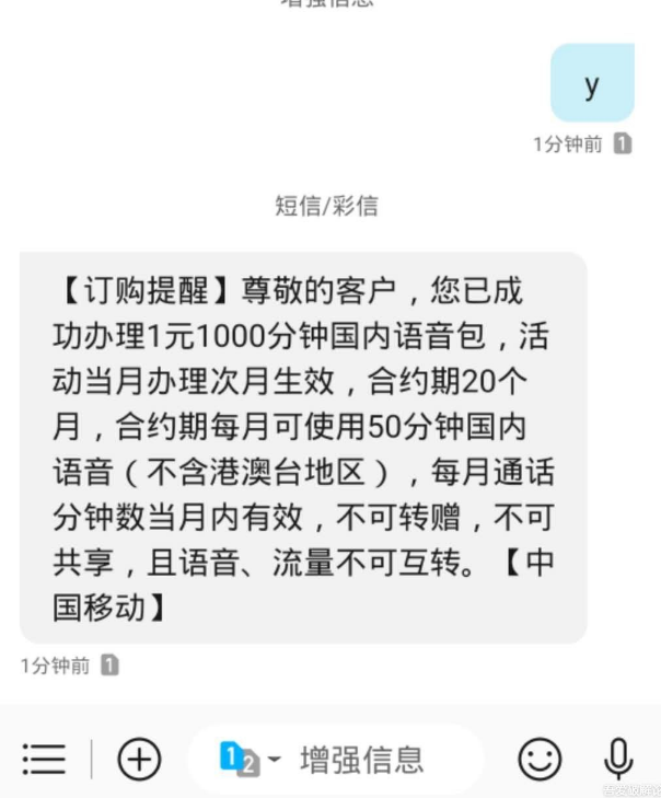 移动每月送50分钟通话,连送20个月,共1000分(支付1元)