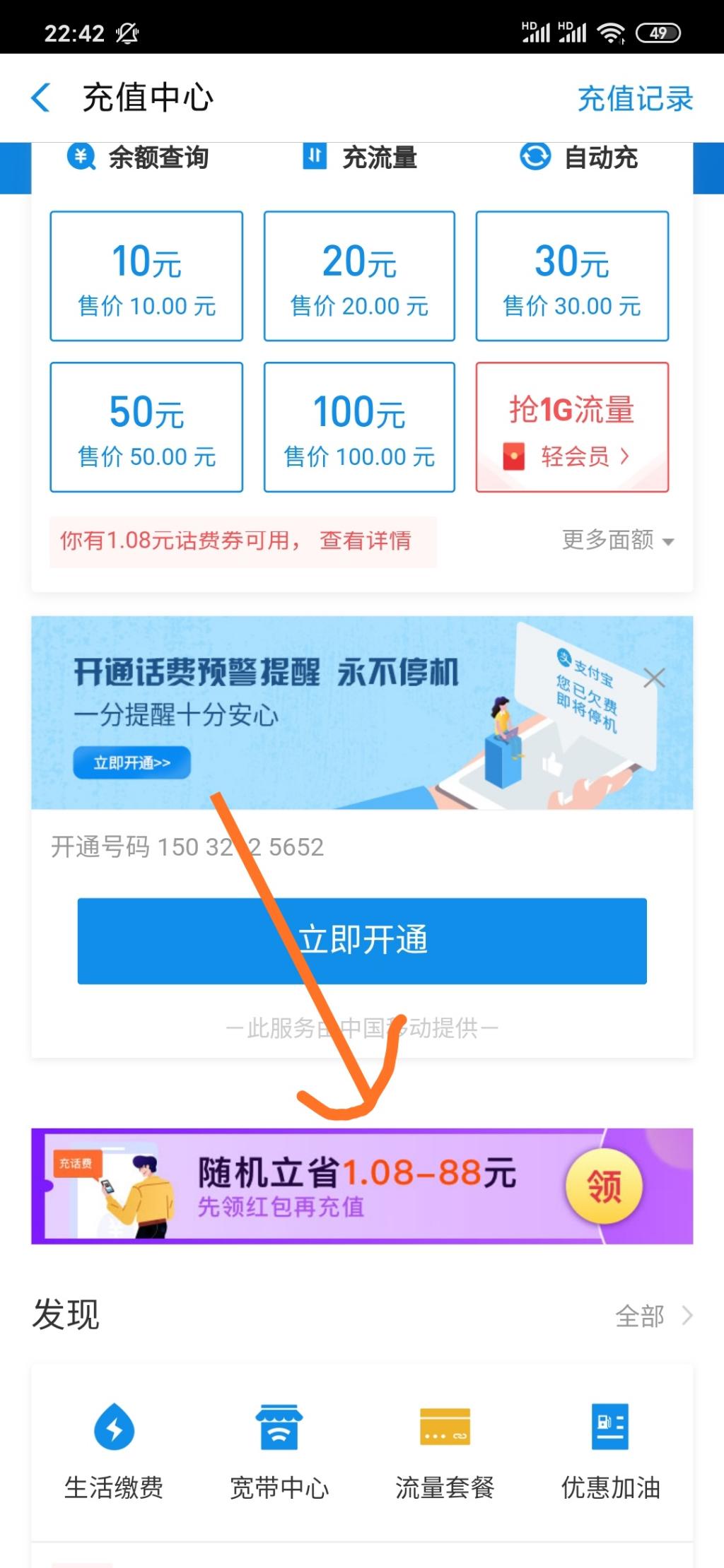 zfb工行充值大毛,最少1.08