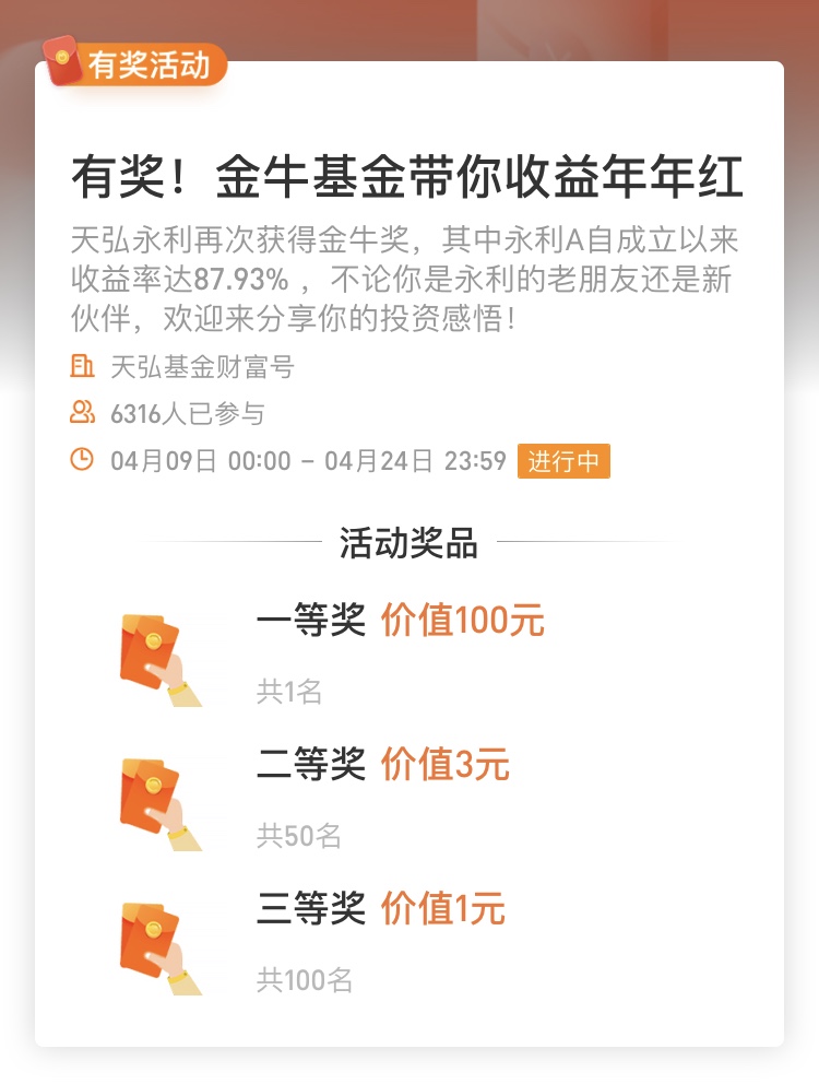 <天弘基金财富号>有奖!金牛基金带你收益年年红(4月24日截止)