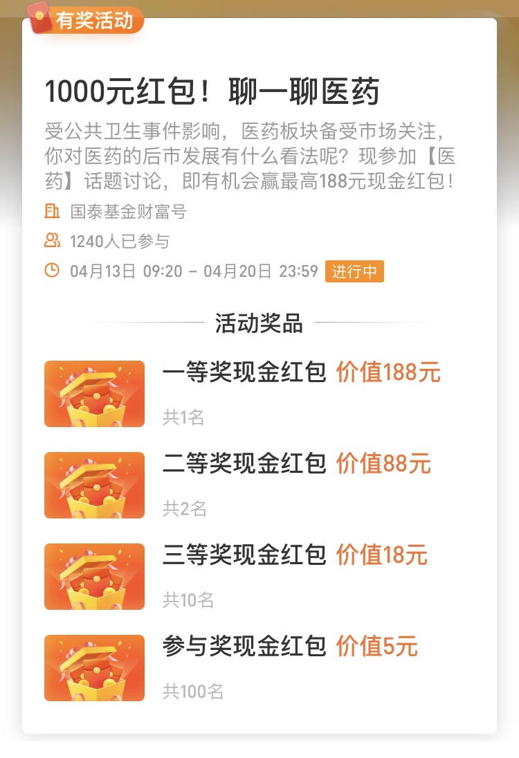 <国泰基金财富号>1000元红包!聊一聊医药(4月20日截止)