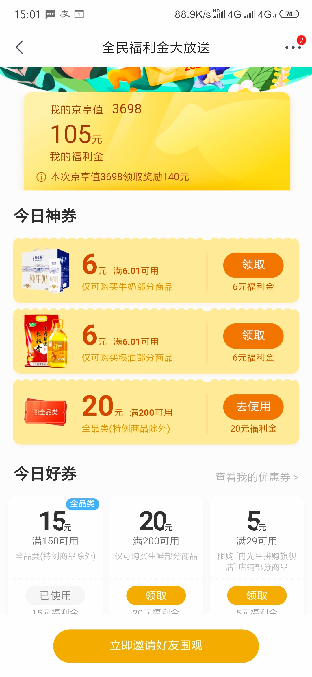 京东入会100豆 看不见就忽略