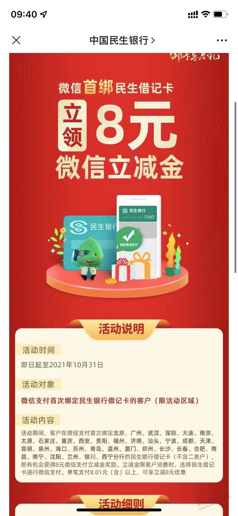 民生立减金来了8元