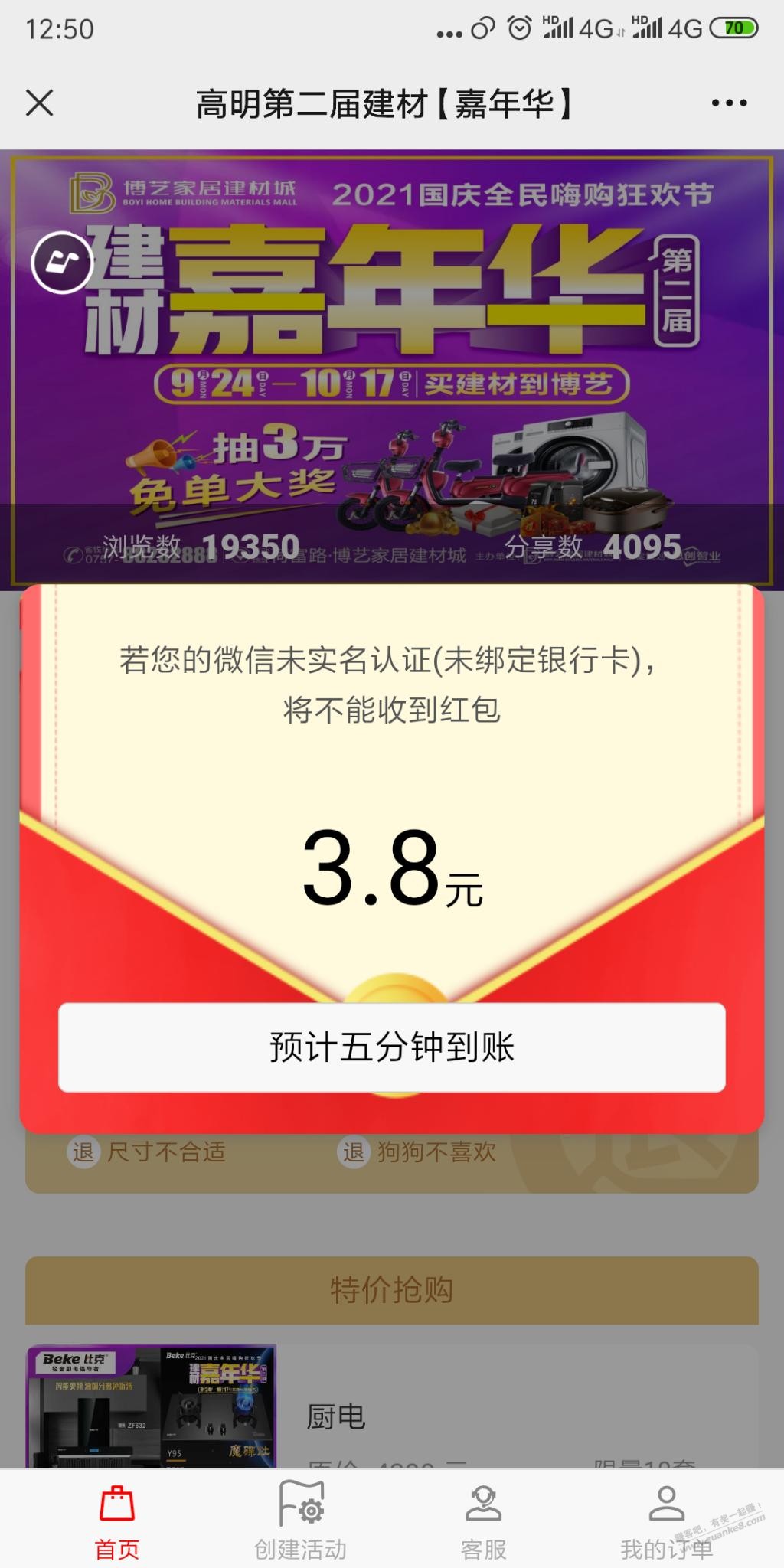 微信打开,假分享,会弹出录音,说一句话。。必中3.8元