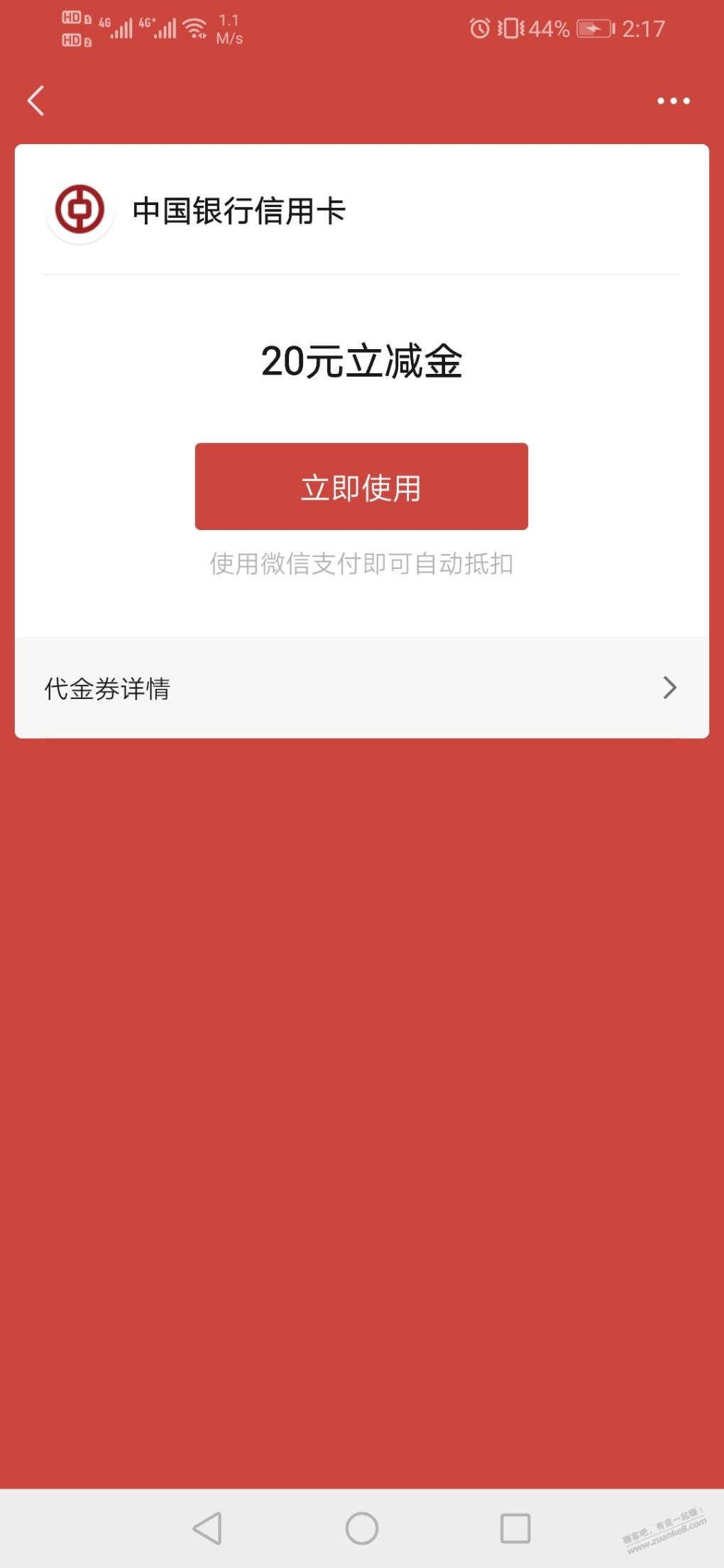 中行xing/用卡20微信立减金,收腰用户,河北可领,吧码可用