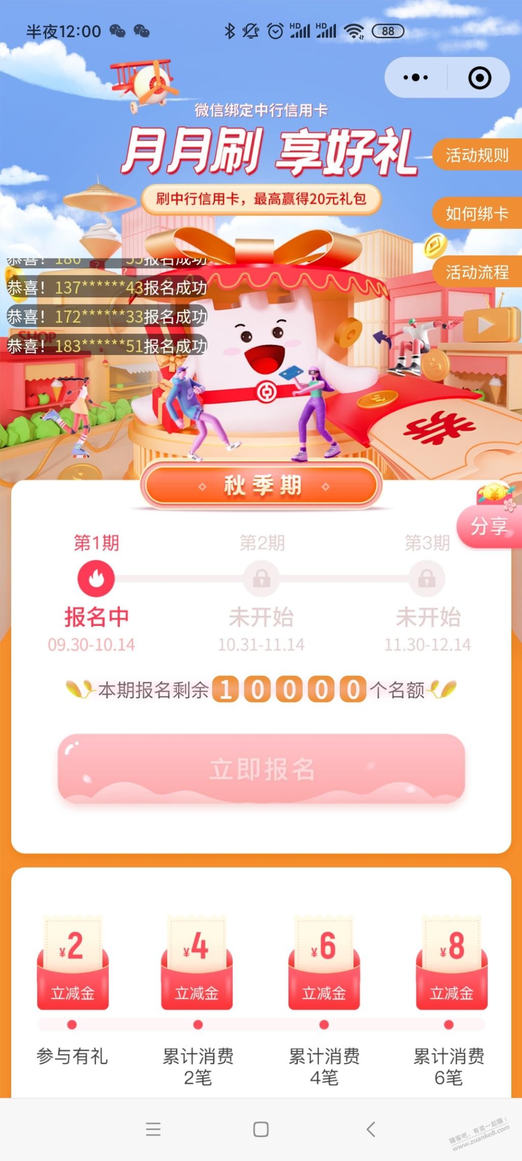 江苏中行xing/用卡月月刷可以报名了