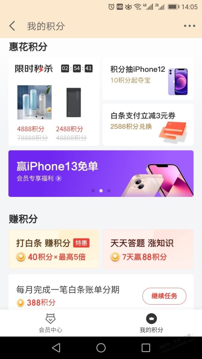 我的积分里面秒杀 2488积分换价值49的1W毫安充电宝