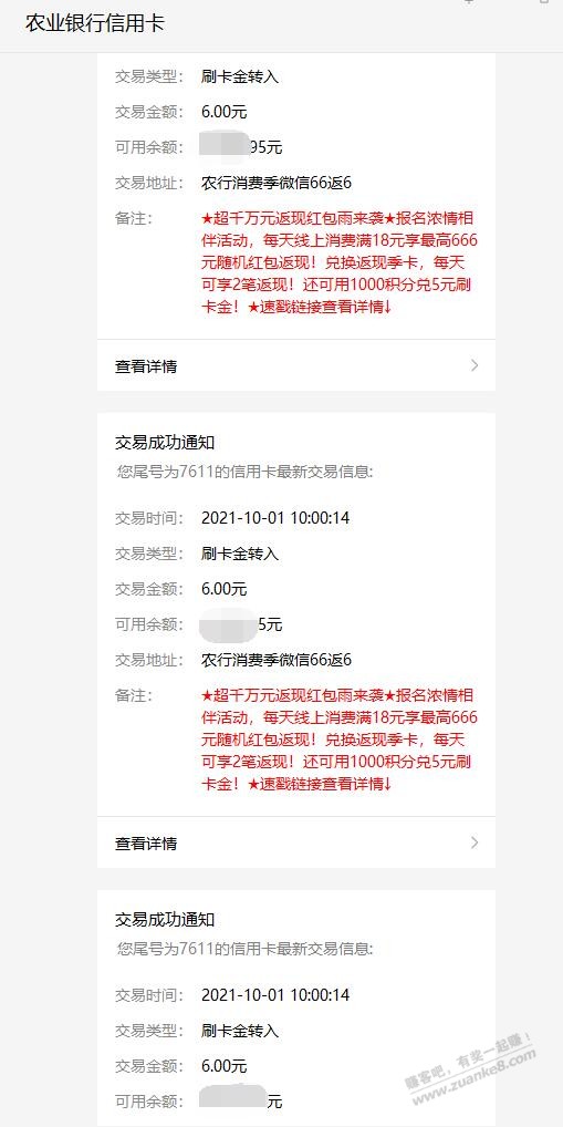 6块钱,农行半夜刷的不算数吧,刚又刷了7笔,立马到帐了
