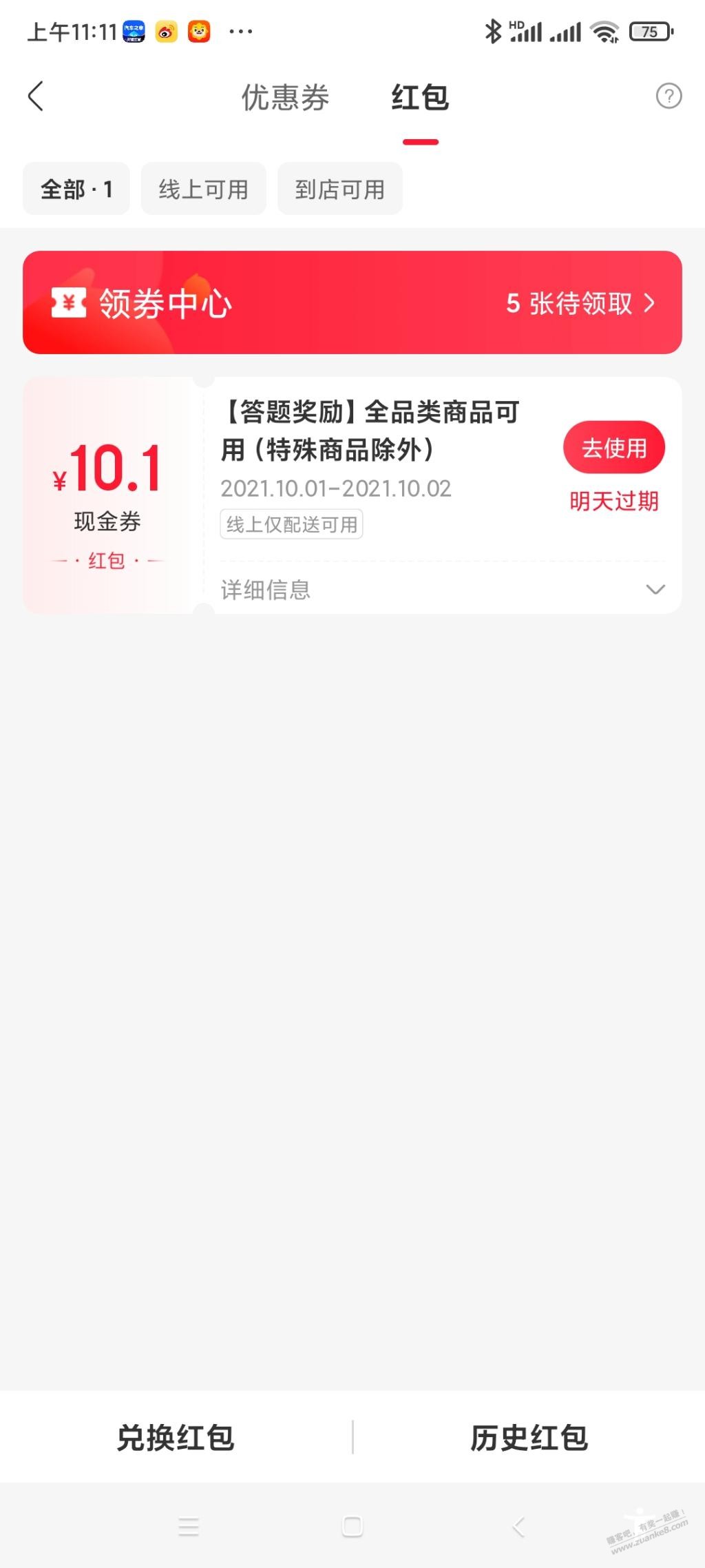 永辉生活app-我的-红包礼卷-兑换优惠劵 输入28 数字 得10元红包