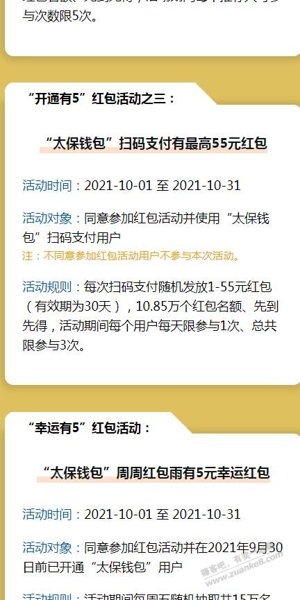 太保钱包 10月活动 开通过的没开通过的都有红包