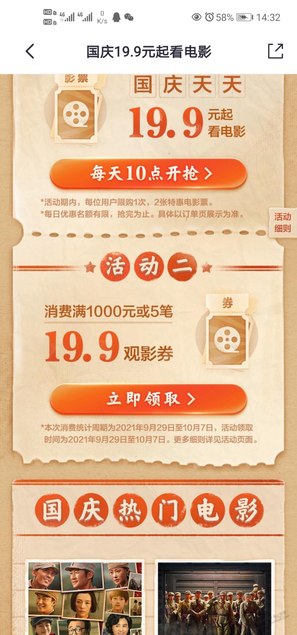 掌上生活19.9观影券