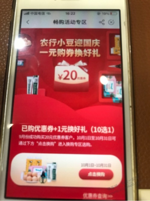 路径 惠享浙江 聚惠温州 农行小豆迎国庆 点击换购 有好几种商品可买,应该限地区