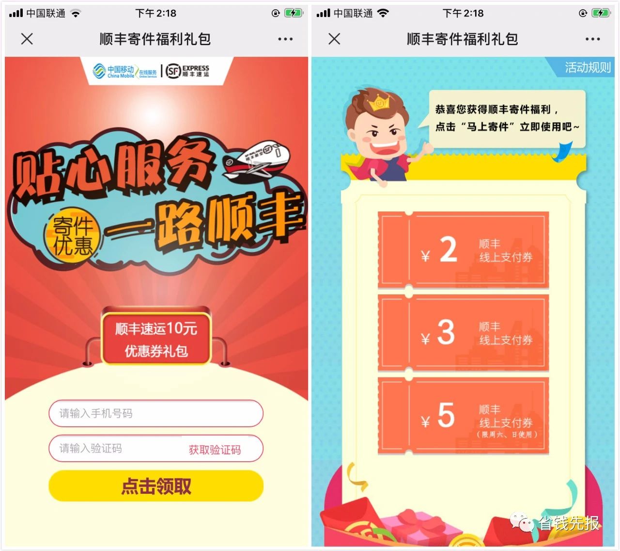 看到一个扫码顺丰快递券的链接,领到多张5元券