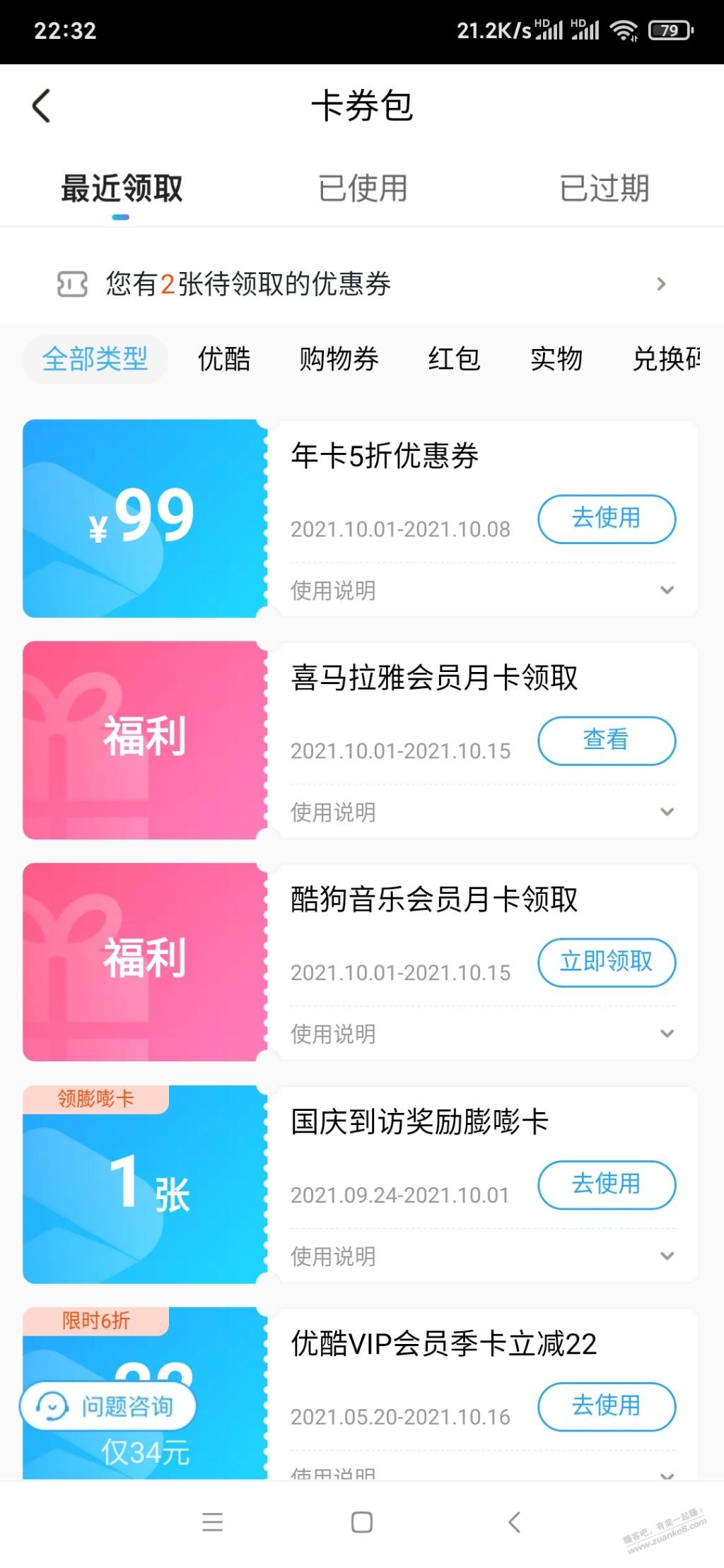 路径:优酷app——会员——精选——国庆嘭福利