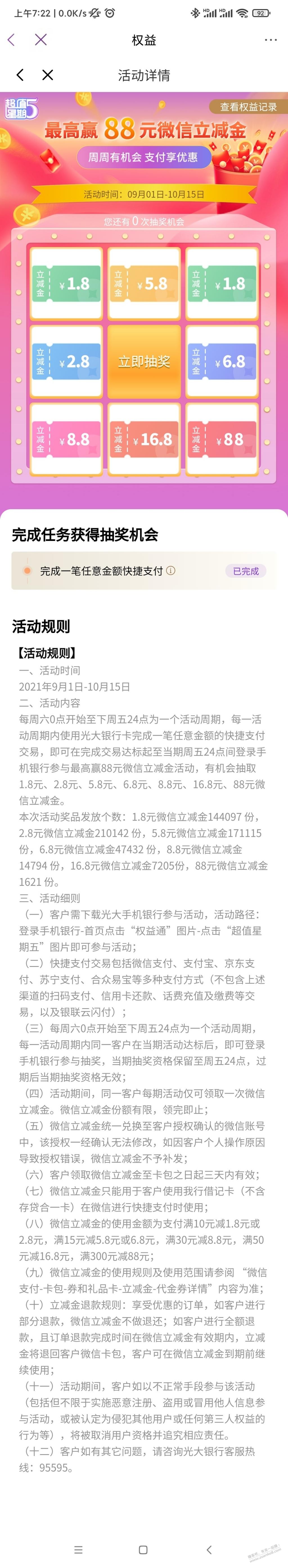 首页广告进去,有消费的就可以抽,进去发现有8次机会,除了88没抽到,其他基本都有了,微信券。