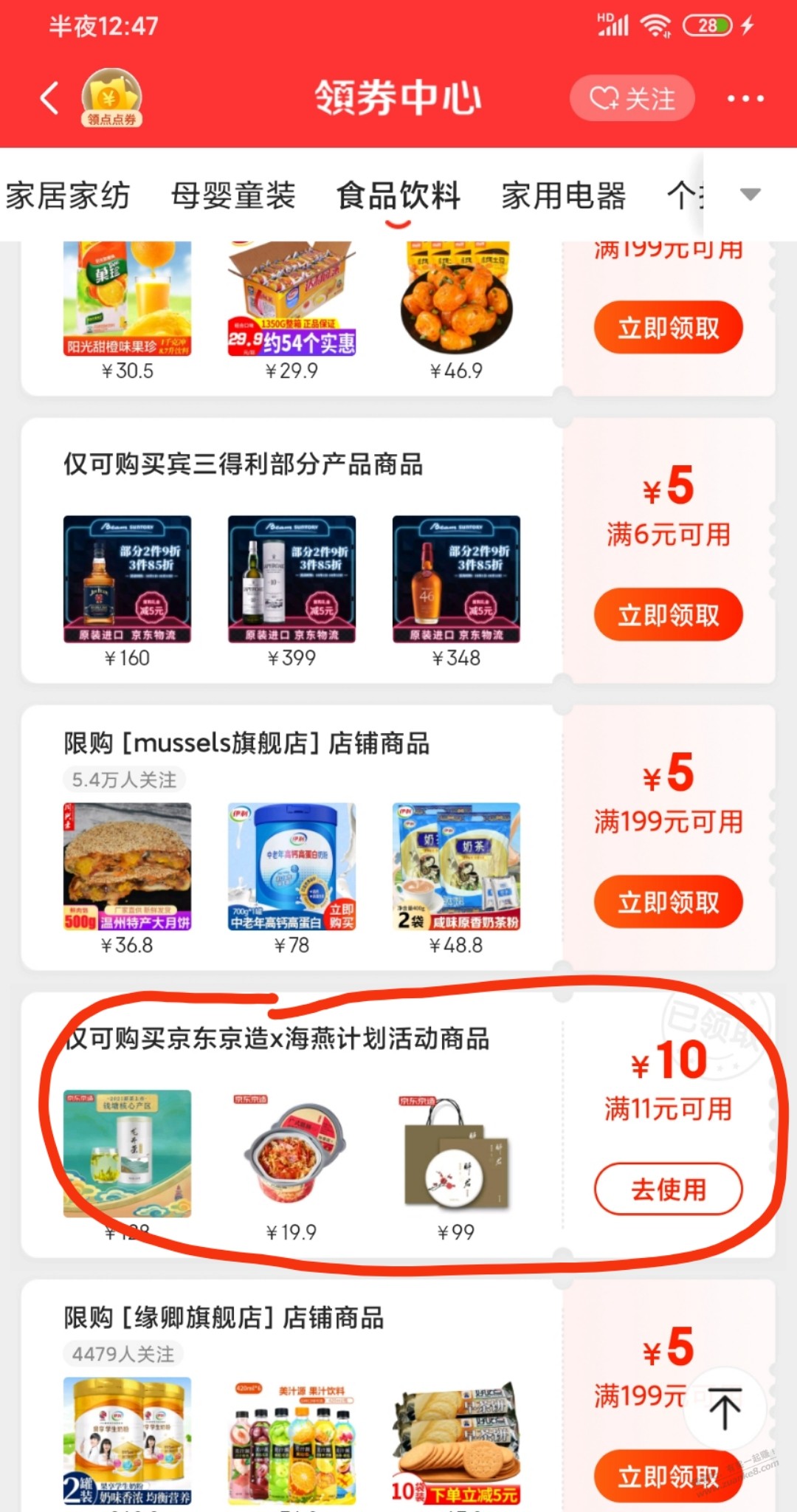 领券中心为你推荐或食品饮料里面领取图中优惠券