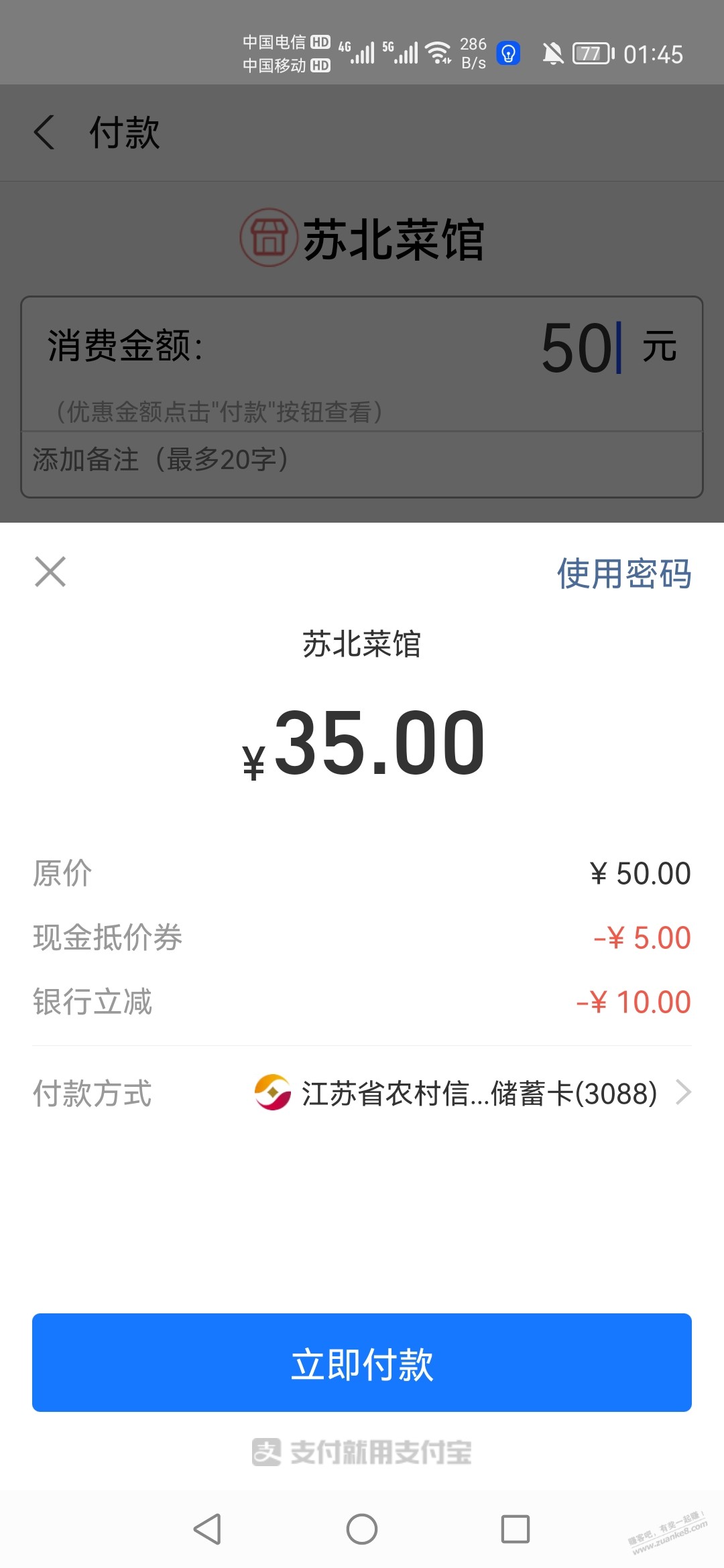 支付宝扫吧码,50-10(江苏农村信用合作社储蓄卡)