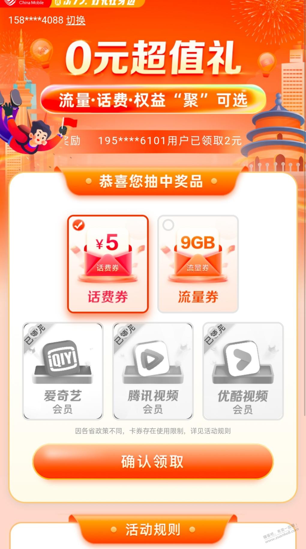 前几天的2元移动话费,今天变成5元了,领取成功后需要中国移动app兑换,秒到!