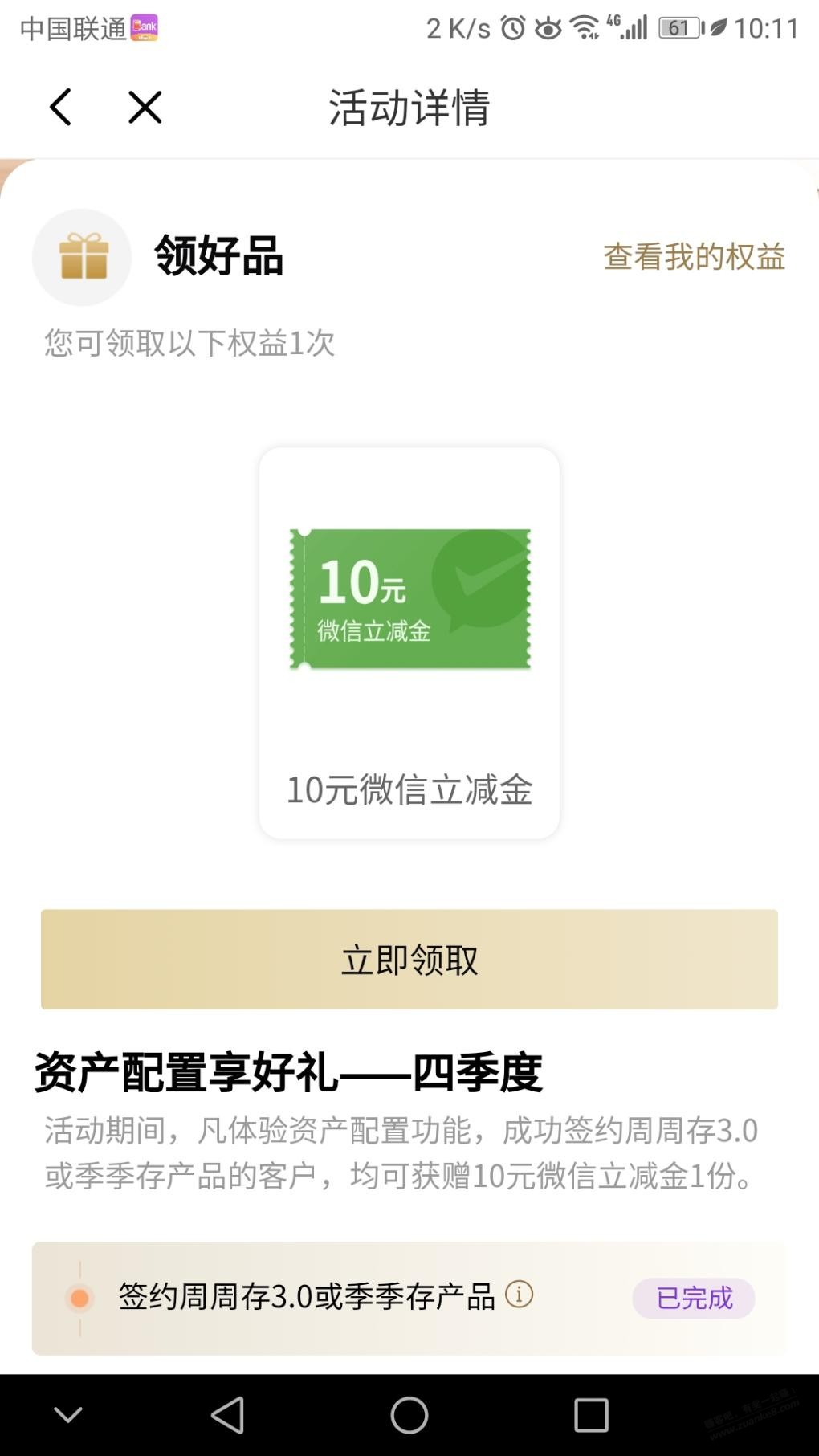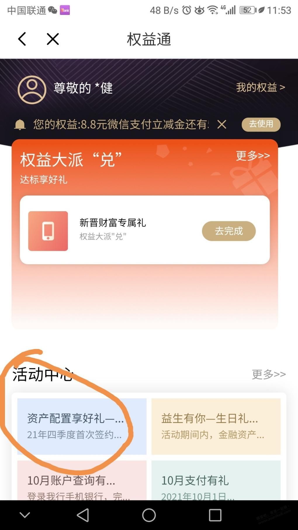 光大银行APP,首页下拉热门活动,权益通,活动中心第一个,只是签约不用存钱,签约后3天可领取,亲测已签约解绑再签也有效