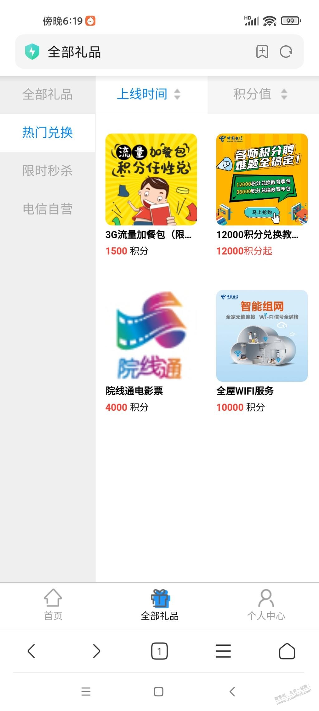 电信号码用户进去看自己积分,4000积分兑换一张电影票,具体自己看看说明吧!积分兑换里面说明公众号只广州,实际不限制,具体自己去看看吧。