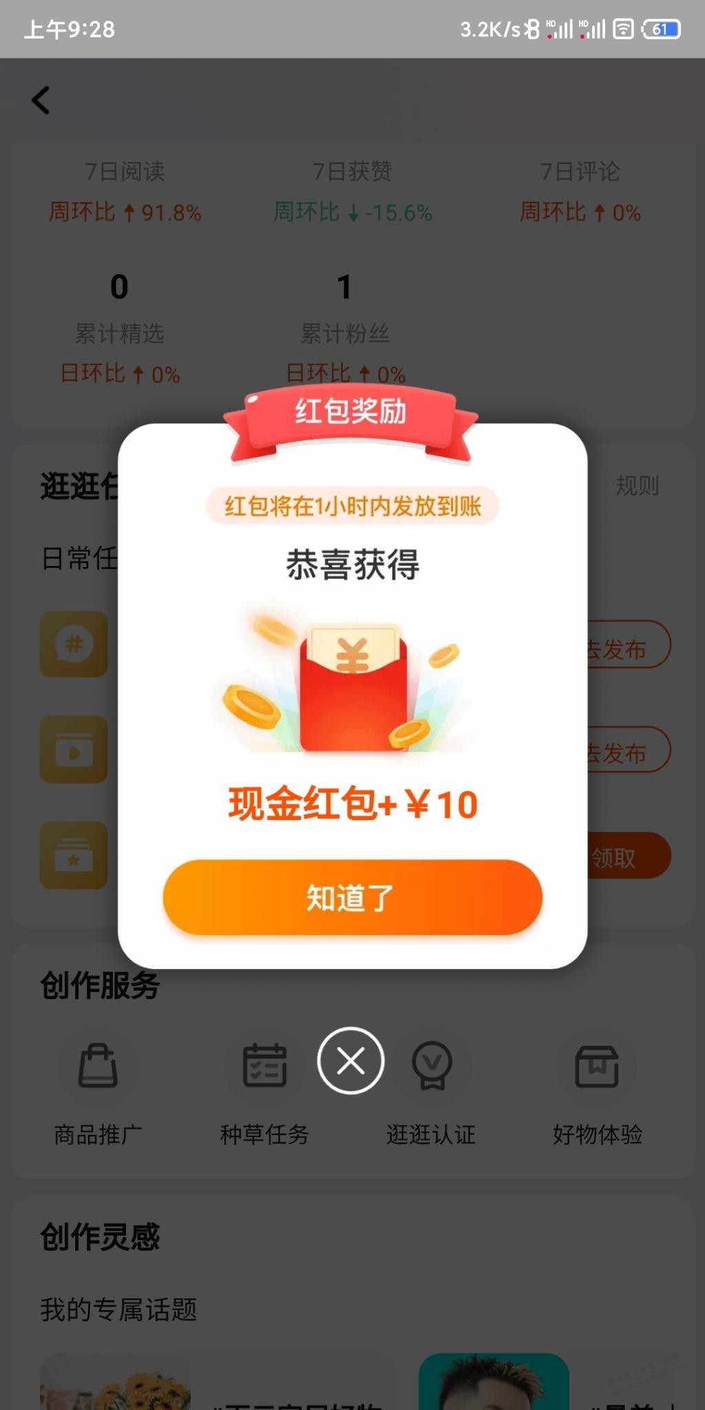 创作中心的红包又更新了