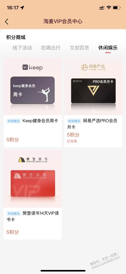 淘票票app-我的-会员中心-积分商城-网易严选月卡(5积分即可兑换)