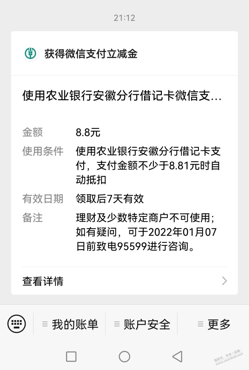 下午开的安徽农行绑定红包