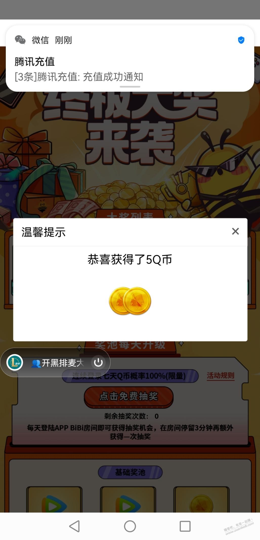 掌上wegame 推荐横幅抽奖 进bibi房间待一下就行
