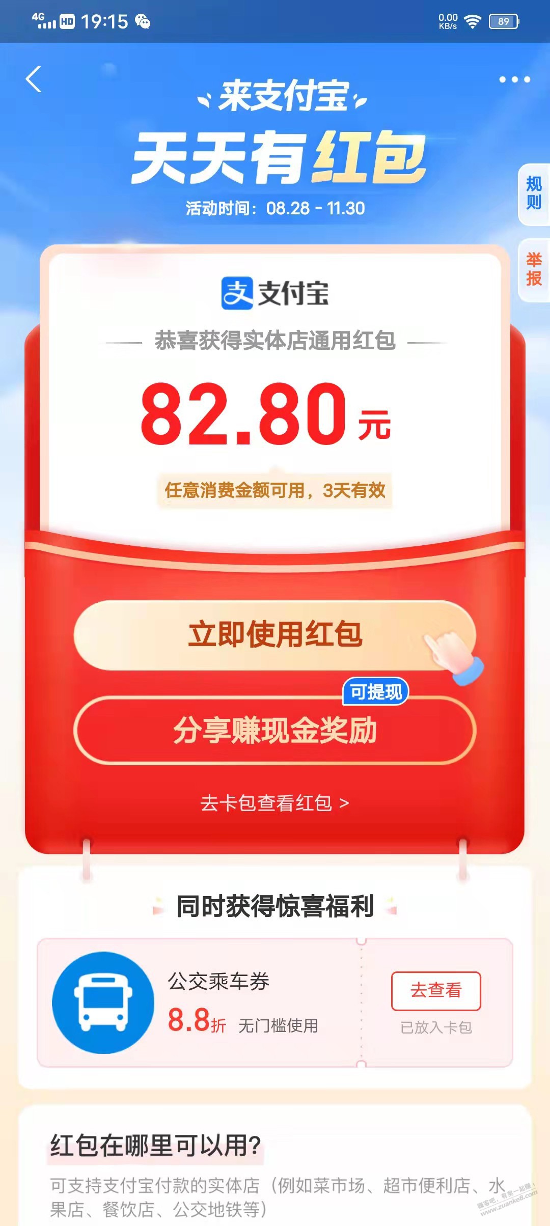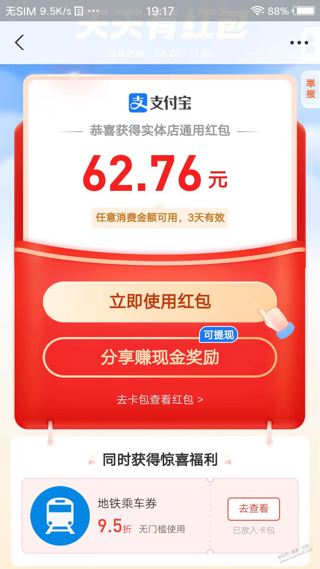 支付宝抽最高888元消费红包 亲测58.88元财运红包