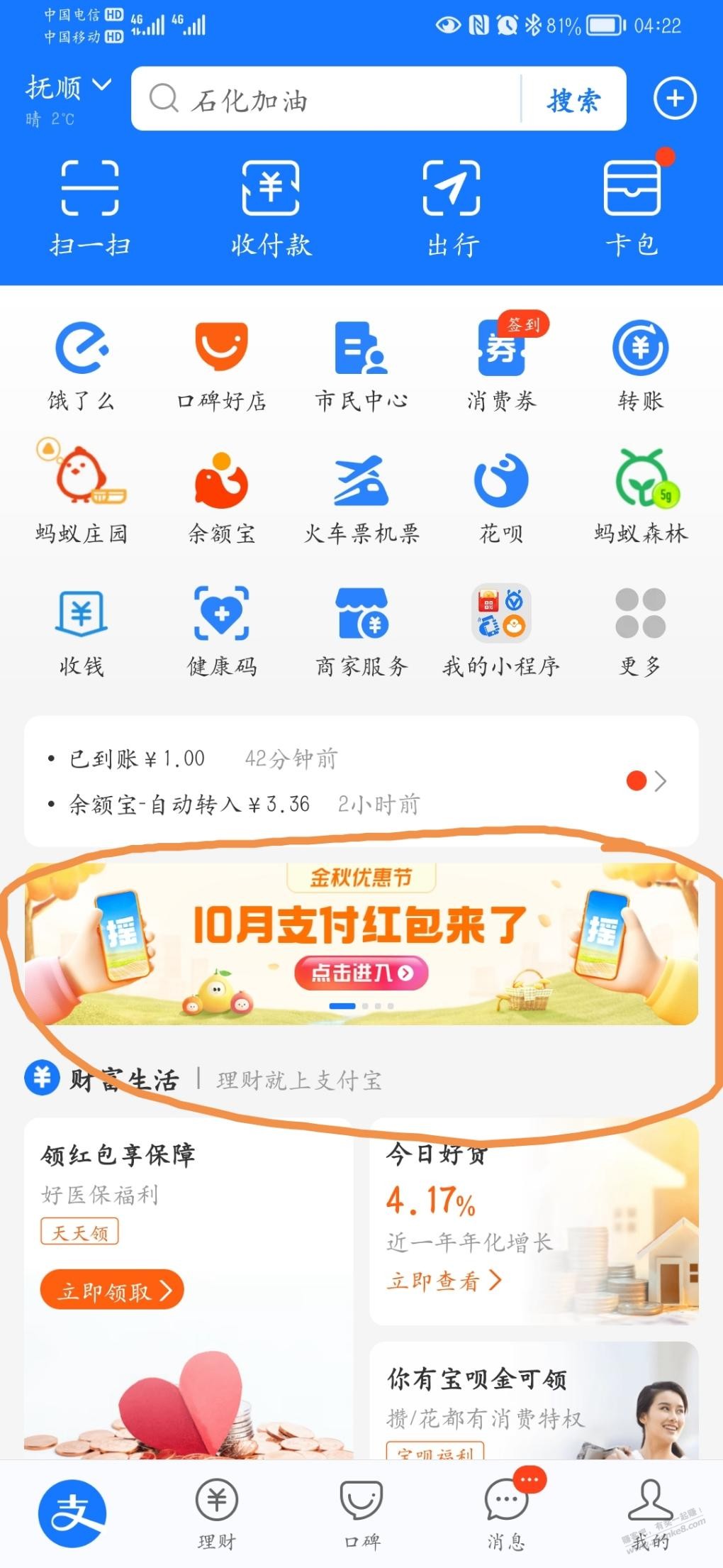 支付宝抽最高888元消费红包 亲测58.88元财运红包
