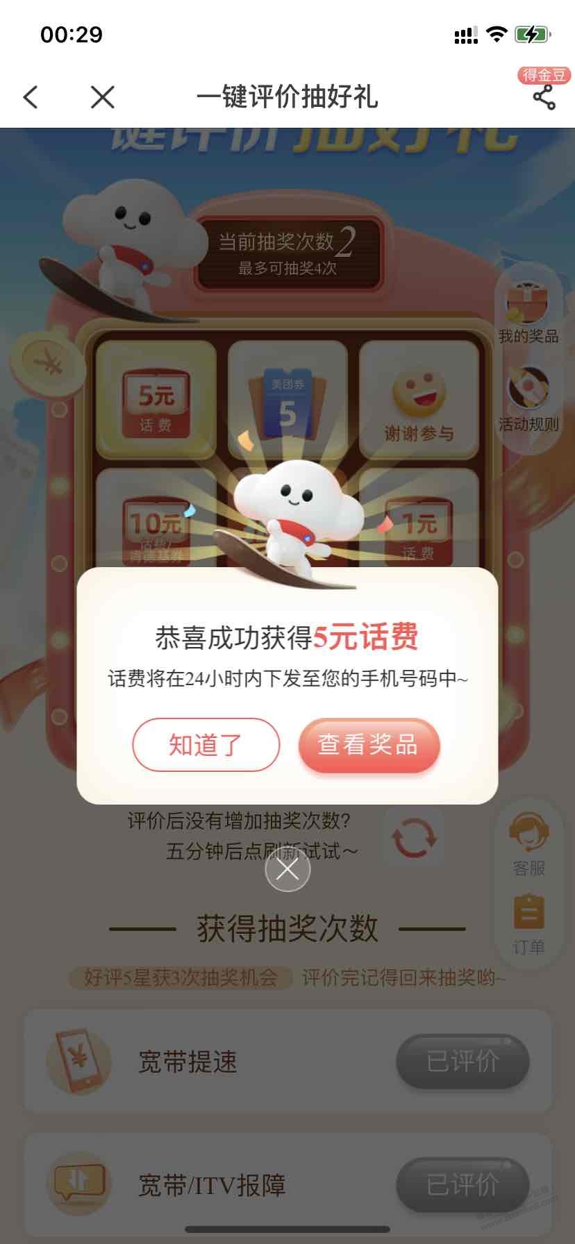 一键评价抽好礼