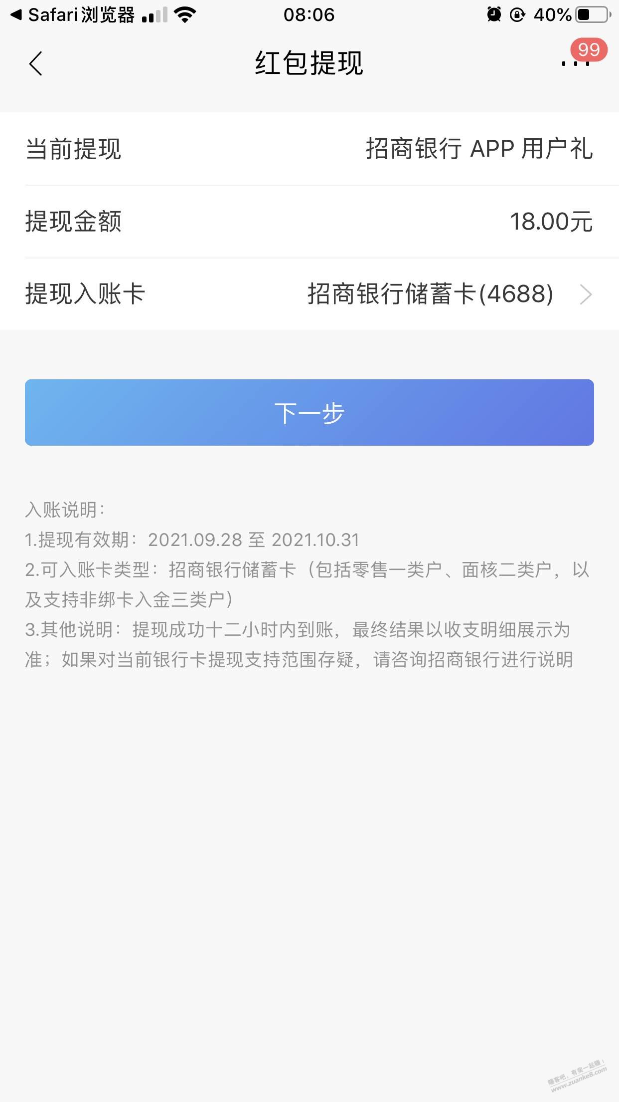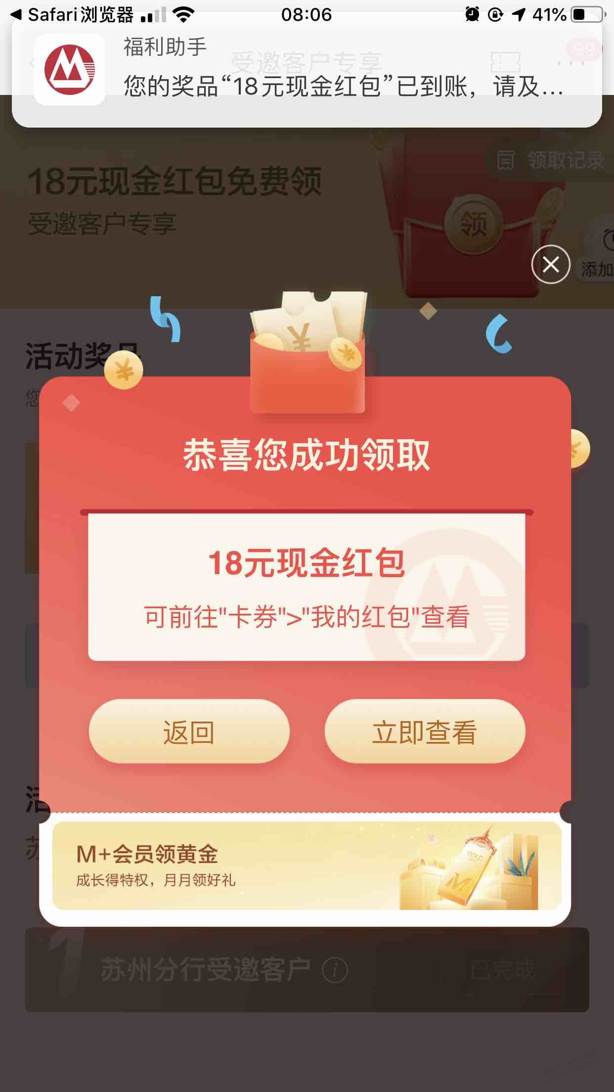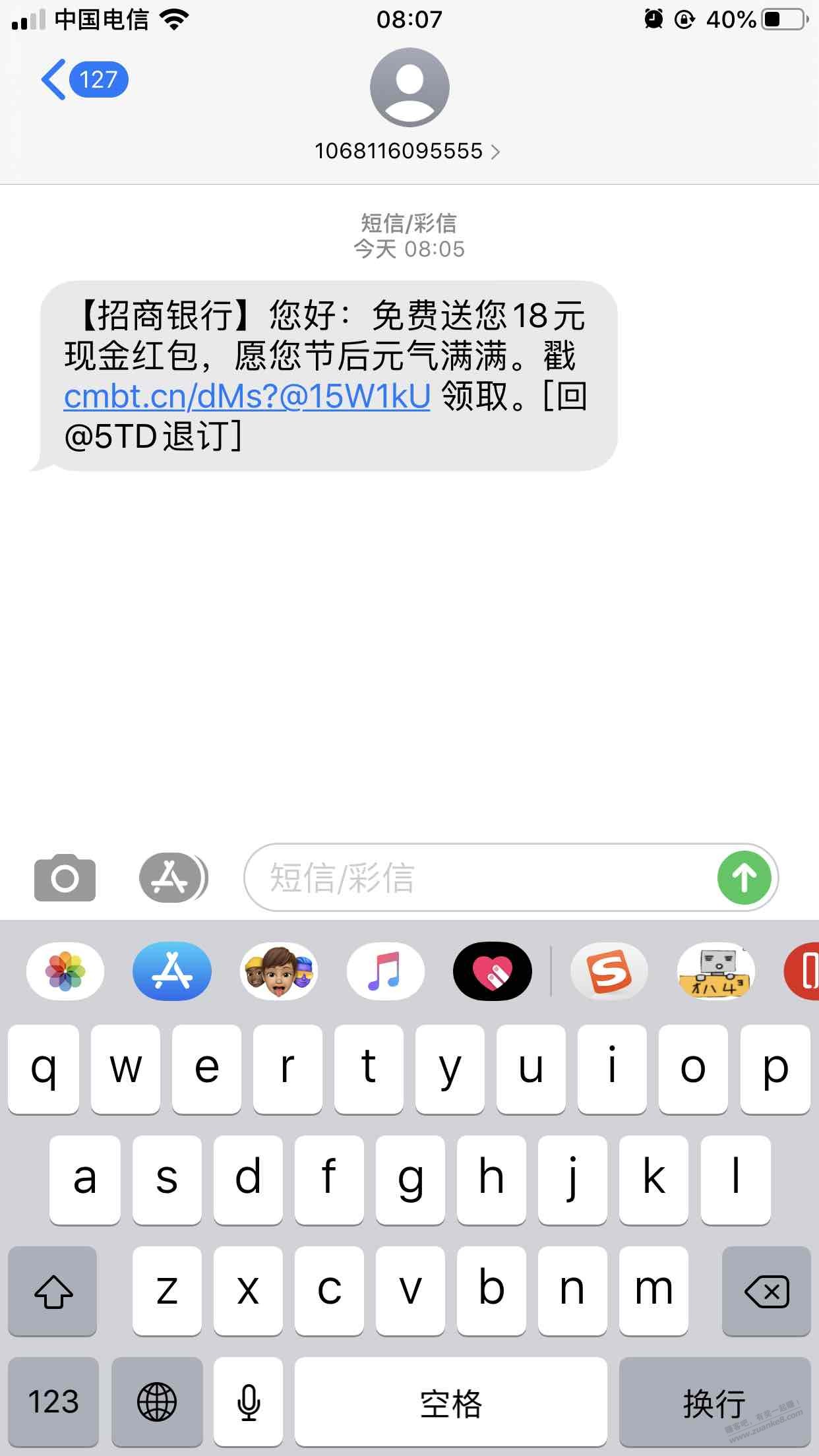 18元毛,招商银行18元现金红包,大家都看看短信