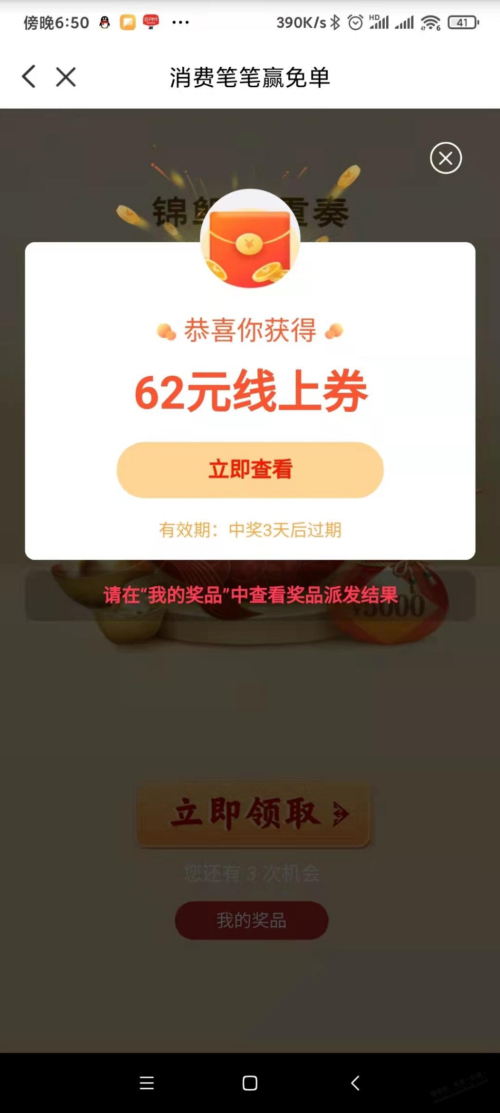 楼上建.行大水哈 记得试试 ,抽到了去建.行生活app