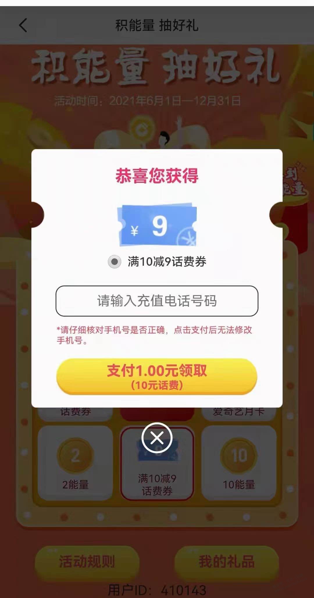 重庆建行话费1买10必中,其他地区自测