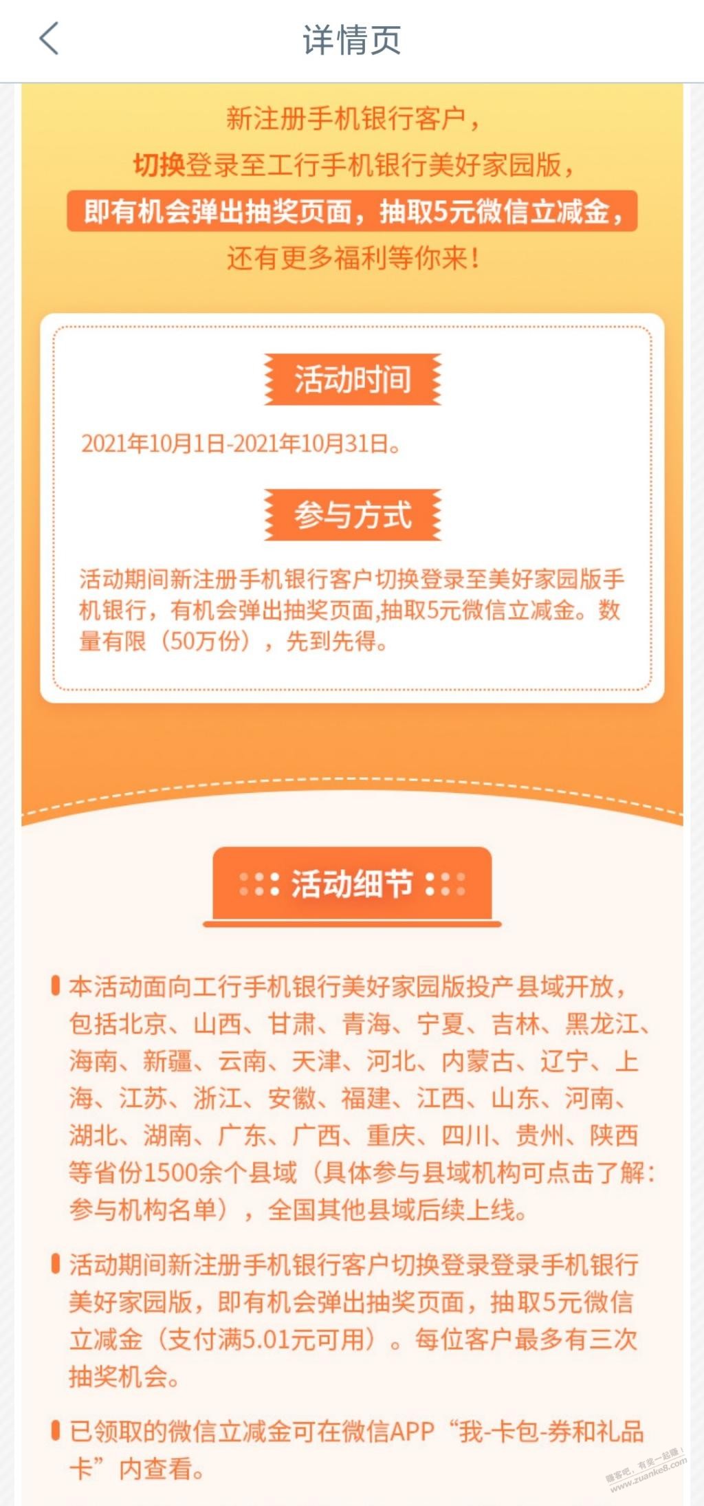 工行APP。右上角加号。选择美好家园版。自动弹5元微信立减金。