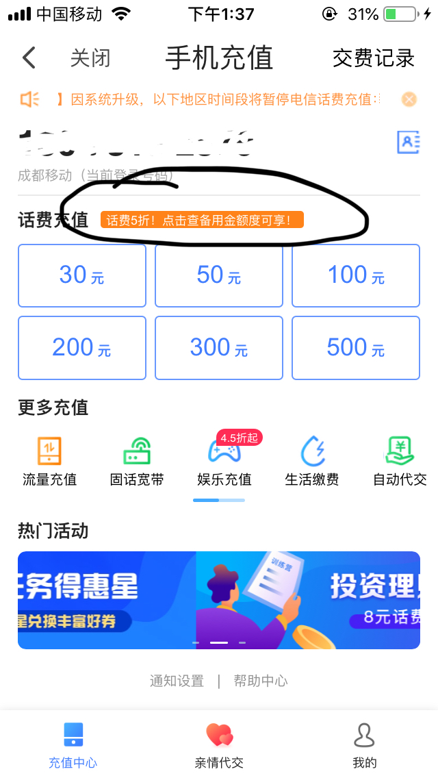 第一次发线报 手机充值享5折最高减30